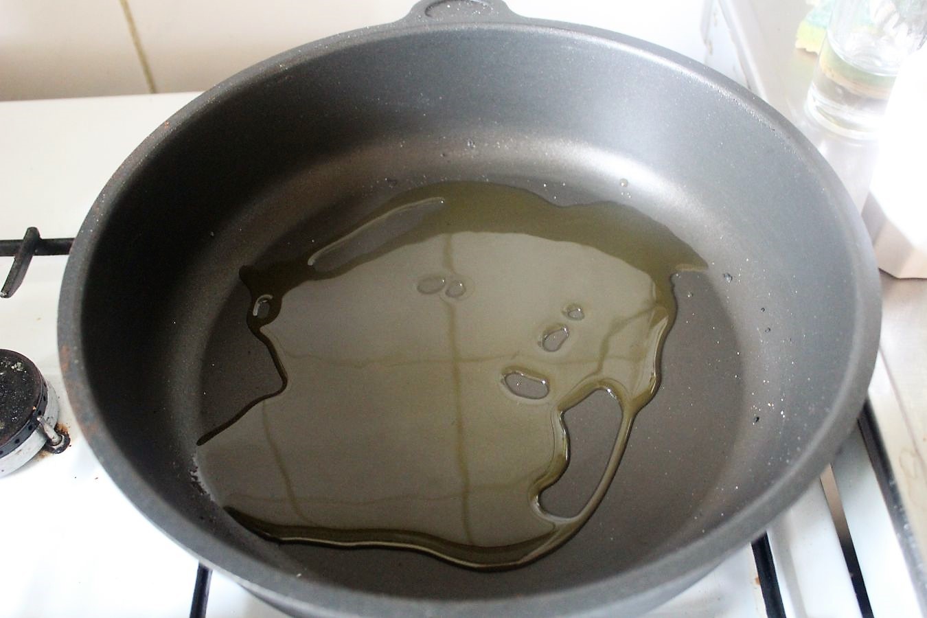 So das Dressing ist fertig, nun schnell Olivenöl in der Pfanne erhitzen, damit die Auberginen gegart werden können.