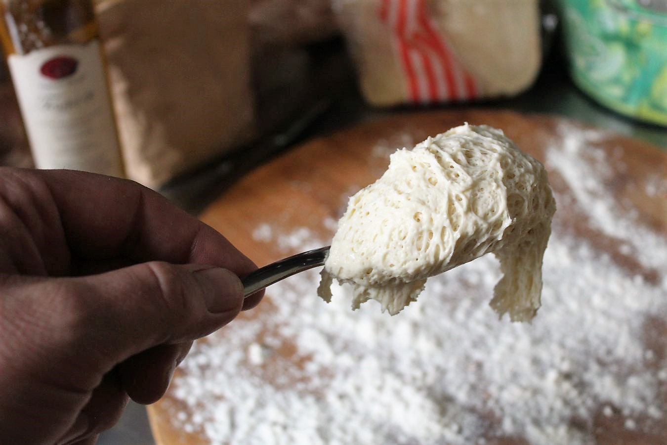 Teig mit einem Esslöffel verrühren