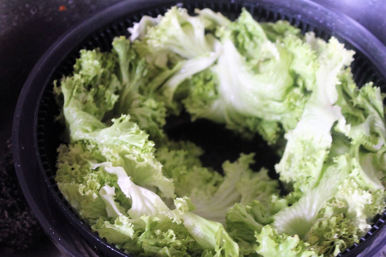 Blattsalat zerkleinern und in der Salatschleuder säubern und trocknen
