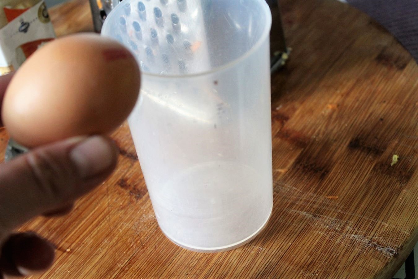 Jetzt machen wir noch schnell eine Mayonnaise. Ich zeige Euch eine Version die man mit einem schnellen Pürierstab machen kann, wie z.B. Esge Zauberstab, oder Triblade. Da muss man nicht erst das Eigelb trennen, sondern kann ein Vollei verwenden.