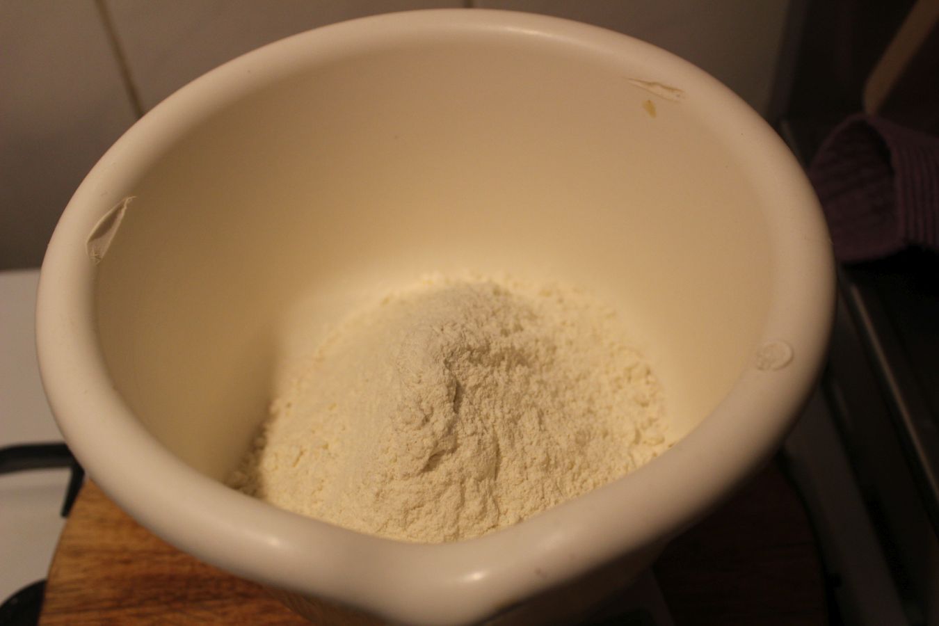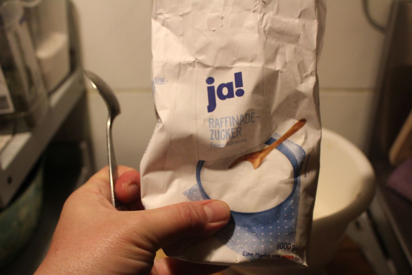 Alle Zutaten mit einem Kochlöffel, oder einem Handrührer vermischen.