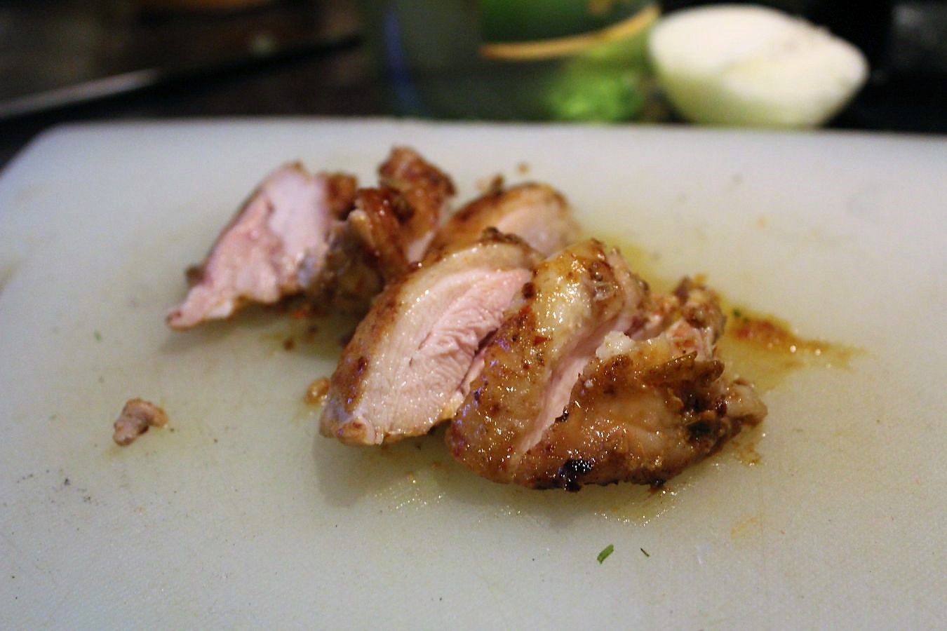 Wenn man die Oberkeulen kauft, ist da noch ein Knochen dran, den man mit einem Schnitt einfach entfernen kann. Es gibt sie teilweise auch schon komplett einbeint zu kaufen, dann sind sie ein wenig teurer.