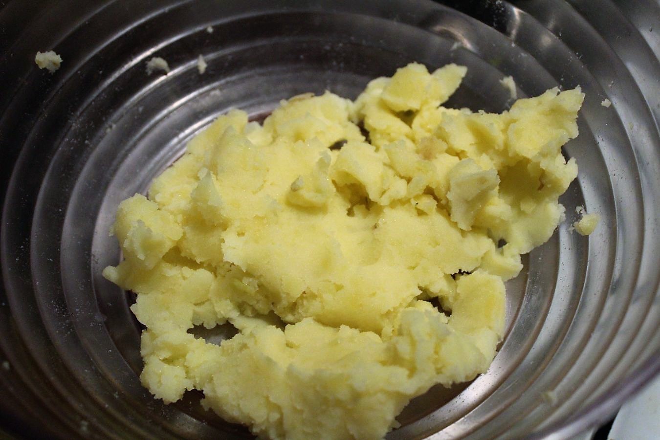 Kartoffeln pellen und stampfen, oder zerquetschen