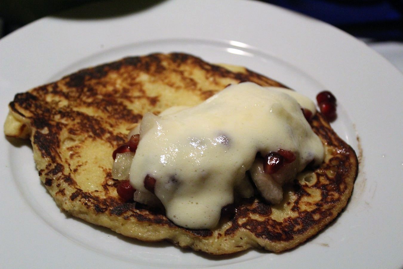 Die Kartoffelpfannkuchen sind aber richtig geil, total luftig, sehr leckerer Teig und das frische Obst, mit der selbst gemachten Soße ist echt der Knaller. Für mich ist das Nachtisch, aber meine Kinder und vielleicht auch Frauen, könnten das auch als Hauptgericht betrachten.