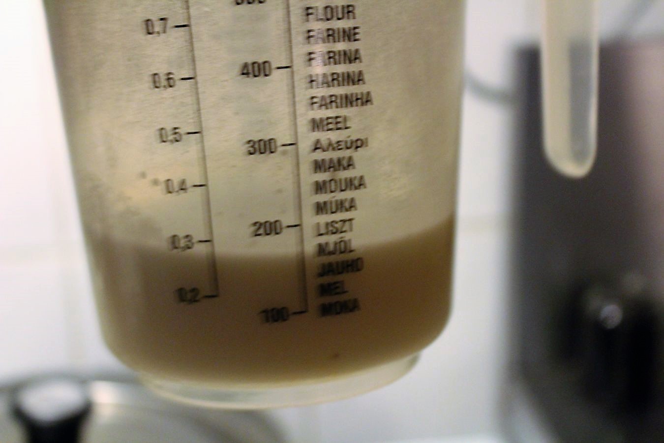 Aufgelöste Hefe zu den anderen Zutaten kippen