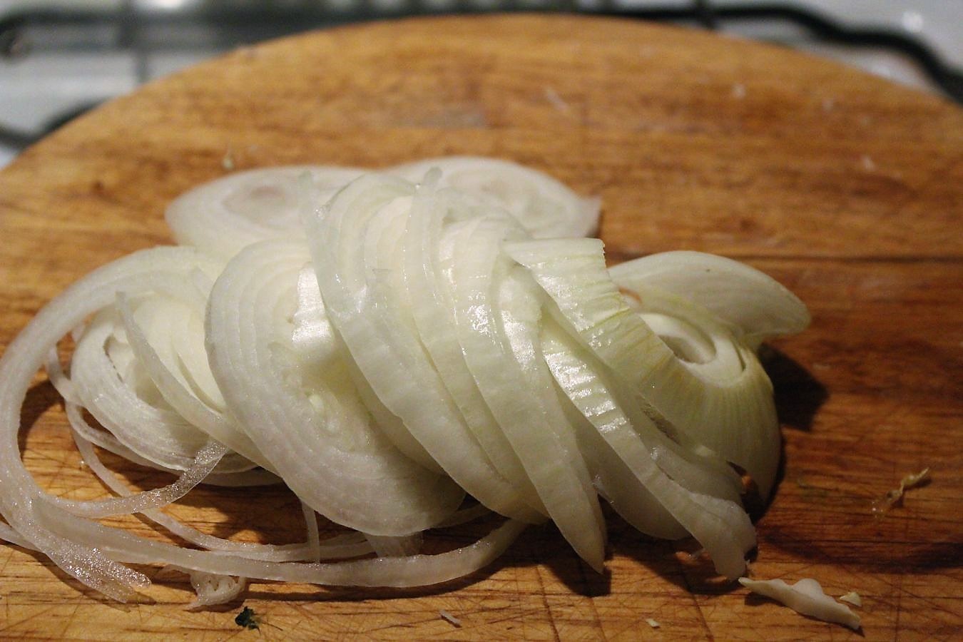 Wenn die Zwiebeln schon weich sind, einen ordentlichen Schuss Bier dazu geben. (schmeckt übrigens auch zum Trinken sehr gut)