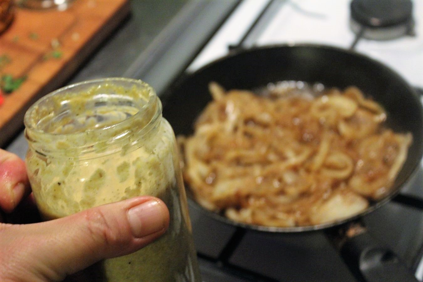 Einen Moment müssen wir noch warten, weil die Zwiebeln noch zu blass sind.