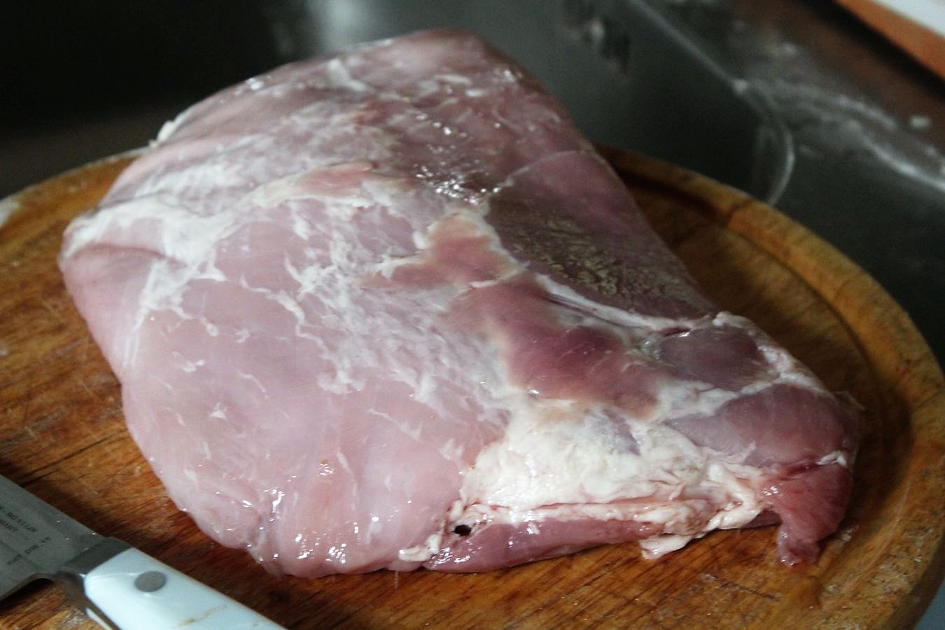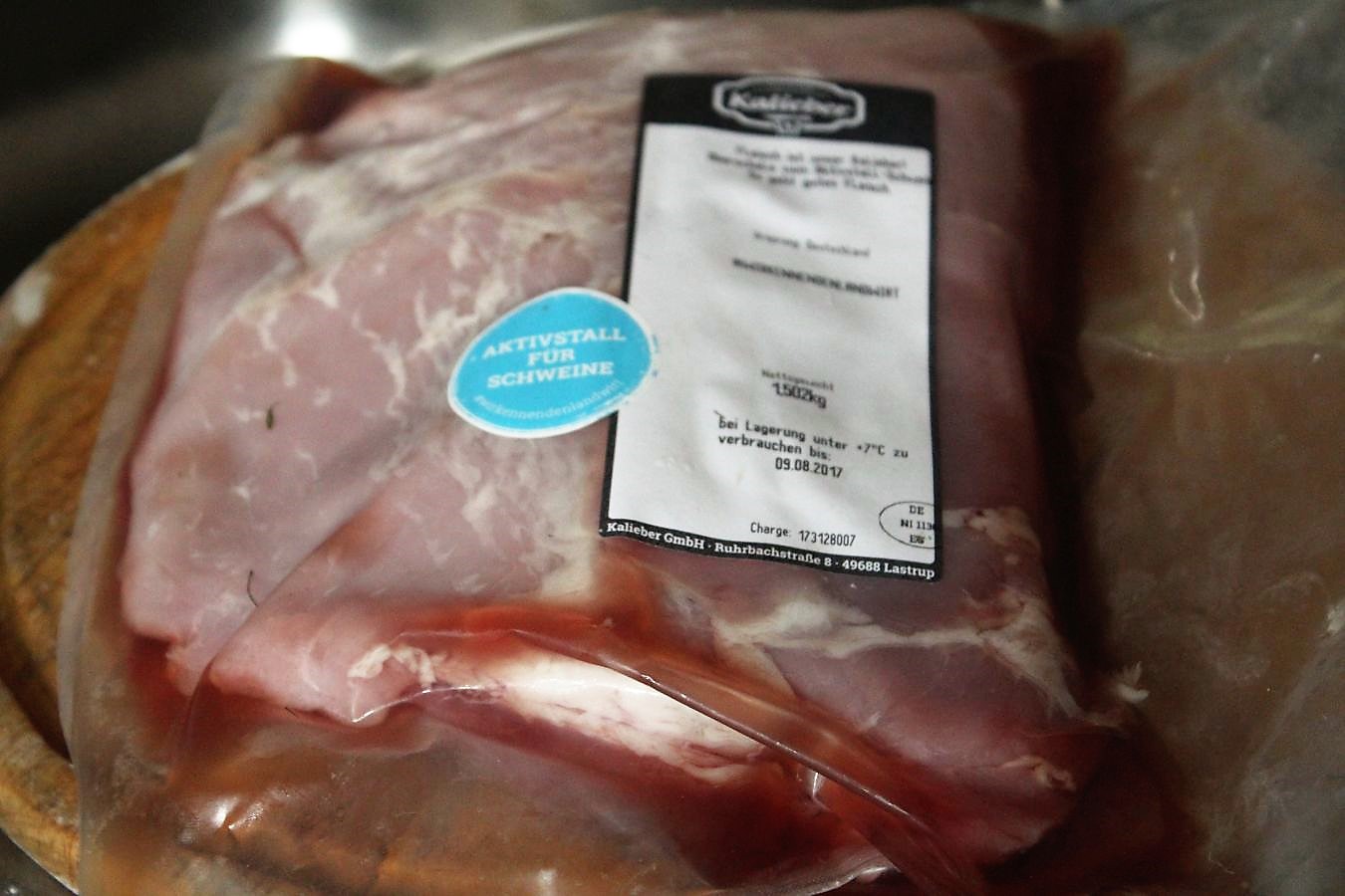 Ich habe hier besonderes Fleisch, nämlich eine Oberschale vom Aktivstallschwein. Das ist nicht bio, aber deutlich besser in der Haltung, als ein konventionelles Boxenschwein. Die Schweine können sich den ganzen Tag frei im Stall bewegen und liegen da nicht mit 10 Schweinen in einer Box und können sich nicht rühren, wie man das immer in den Reportagen sieht, nach denen man sich jedes Mal fragt, ob man nicht doch lieber Vegetarier werden möchte. Hier ist der LINK zur Aktivstallschweinseite.