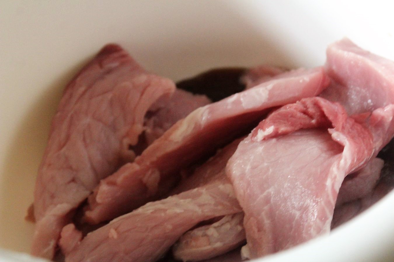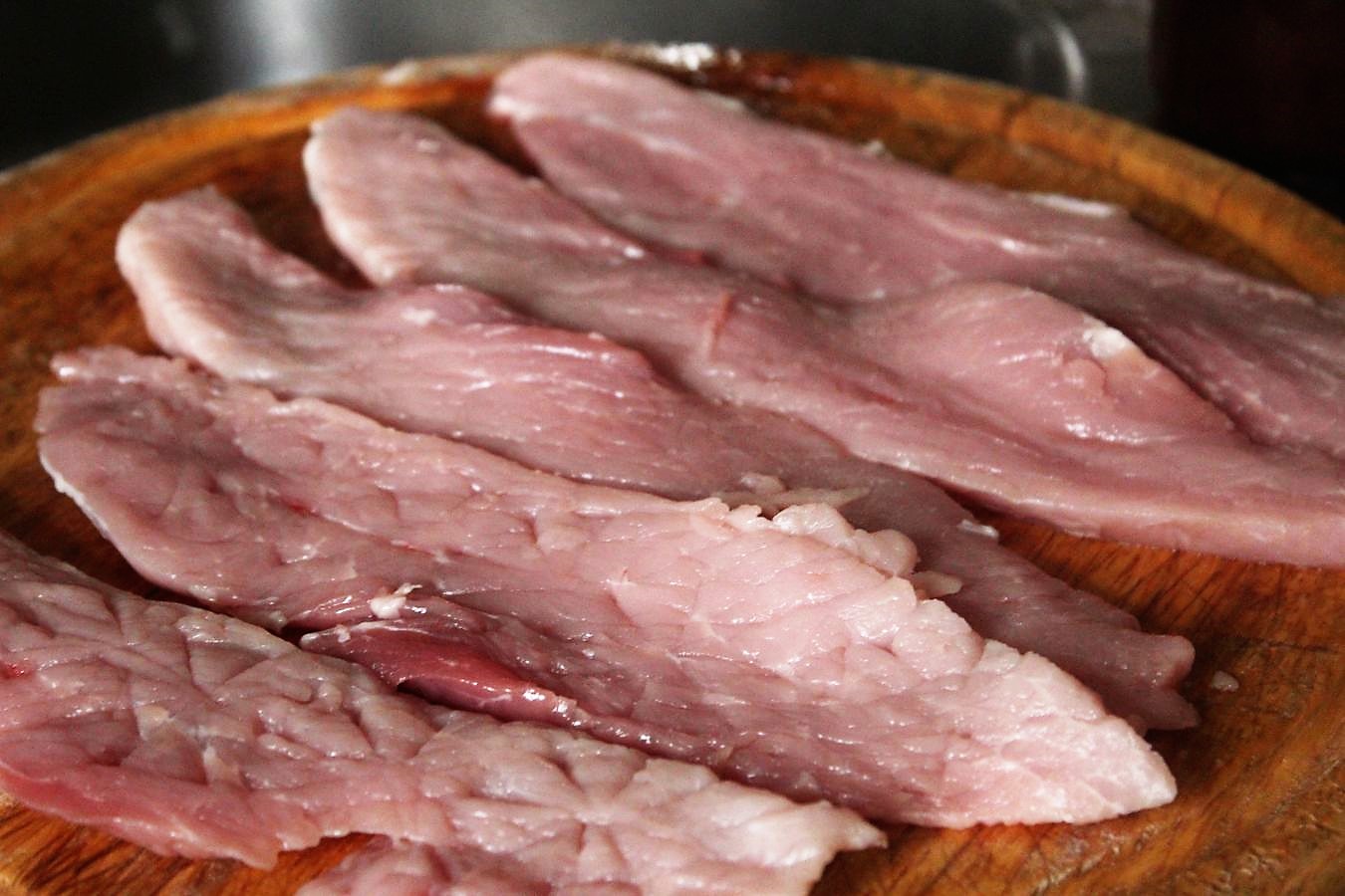 Fleisch gegen die Faser in dünne Scheiben schneiden