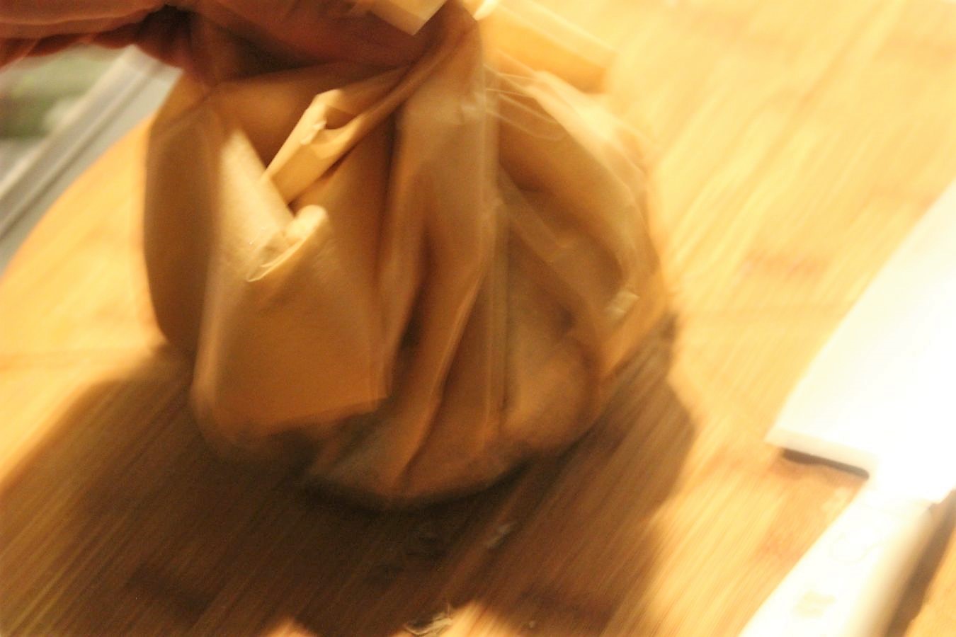 Backpapier um die Artischocke falten und wenn vorhanden mit einer Schnur zubinden