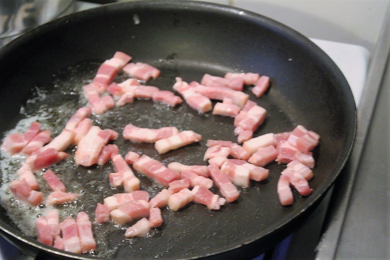 150 Gramm Bacon in der Pfanne auslassen
