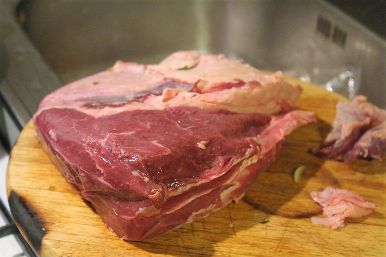 Hier kommt es aus der Verpackung. Im Vergleich zu Supermarktfleisch ist es schon ganz ordentlich pariert und man hat nicht mehr viele Abschnitte und Verlust am Gesamtgewicht.