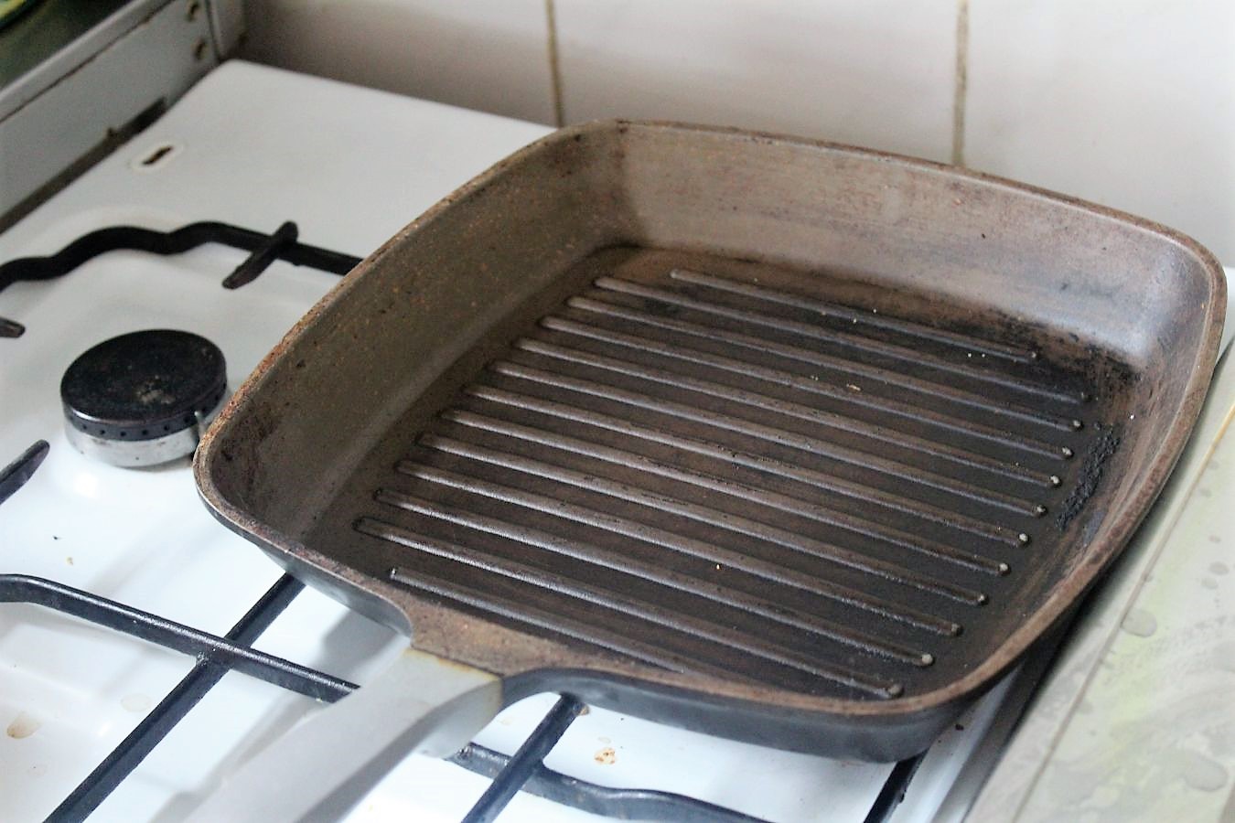 In der Grillpfanne röste ich danach noch meine Toastbrotscheiben von beiden Seiten an. Das Bratfett des Huhns, ist ein guter Geschmackträger und ist nach der ersten Lage Toast sowieso komplett aus der Pfanne verschwunden.