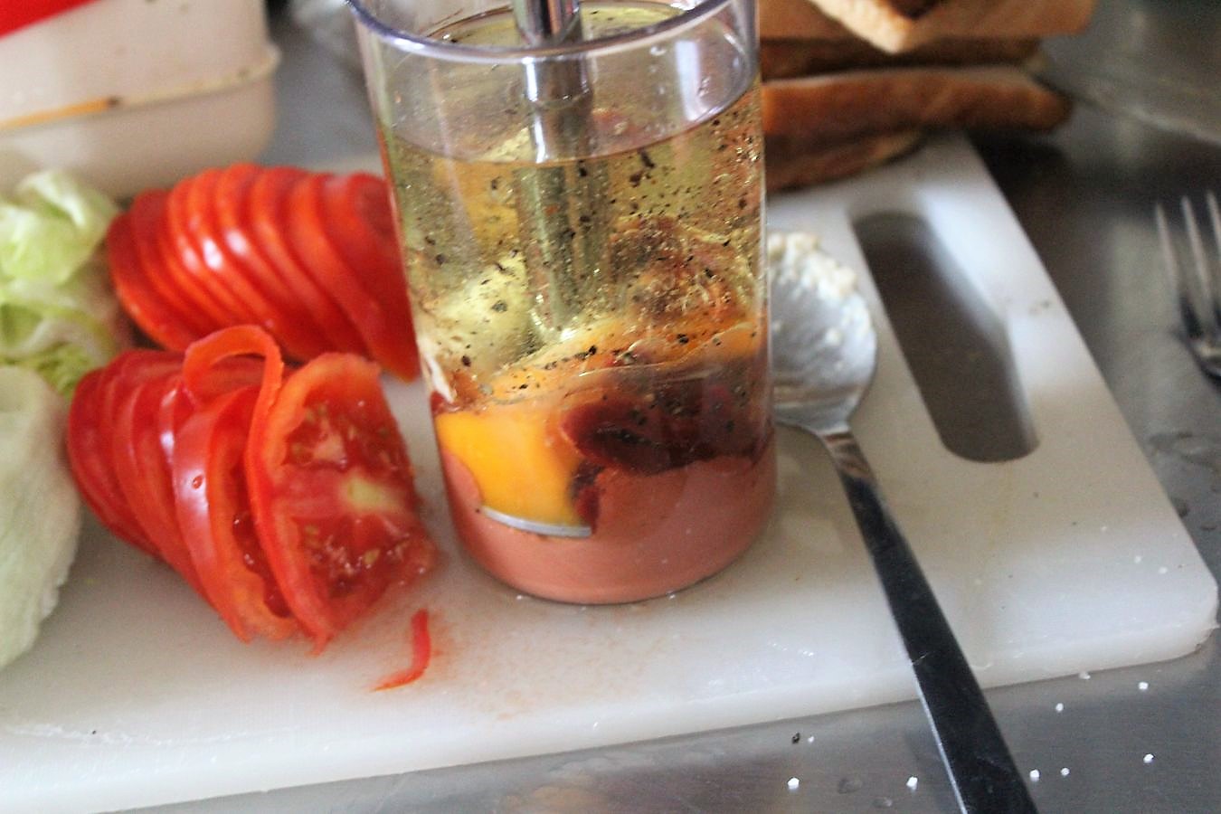 Toast und Salat sind auch am Start, fehlt nur noch die Soße für das Sandwich