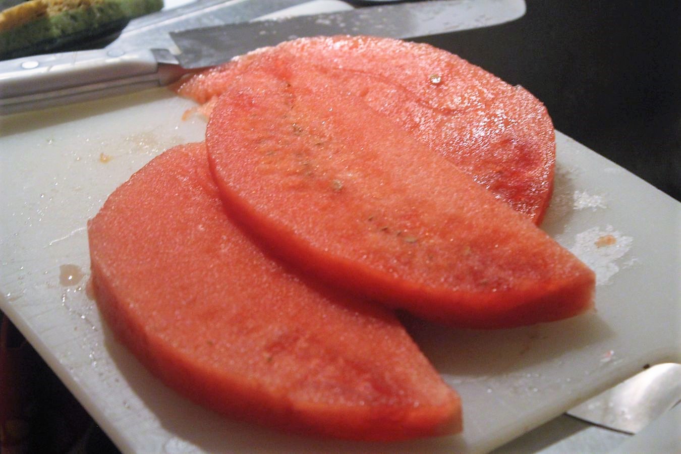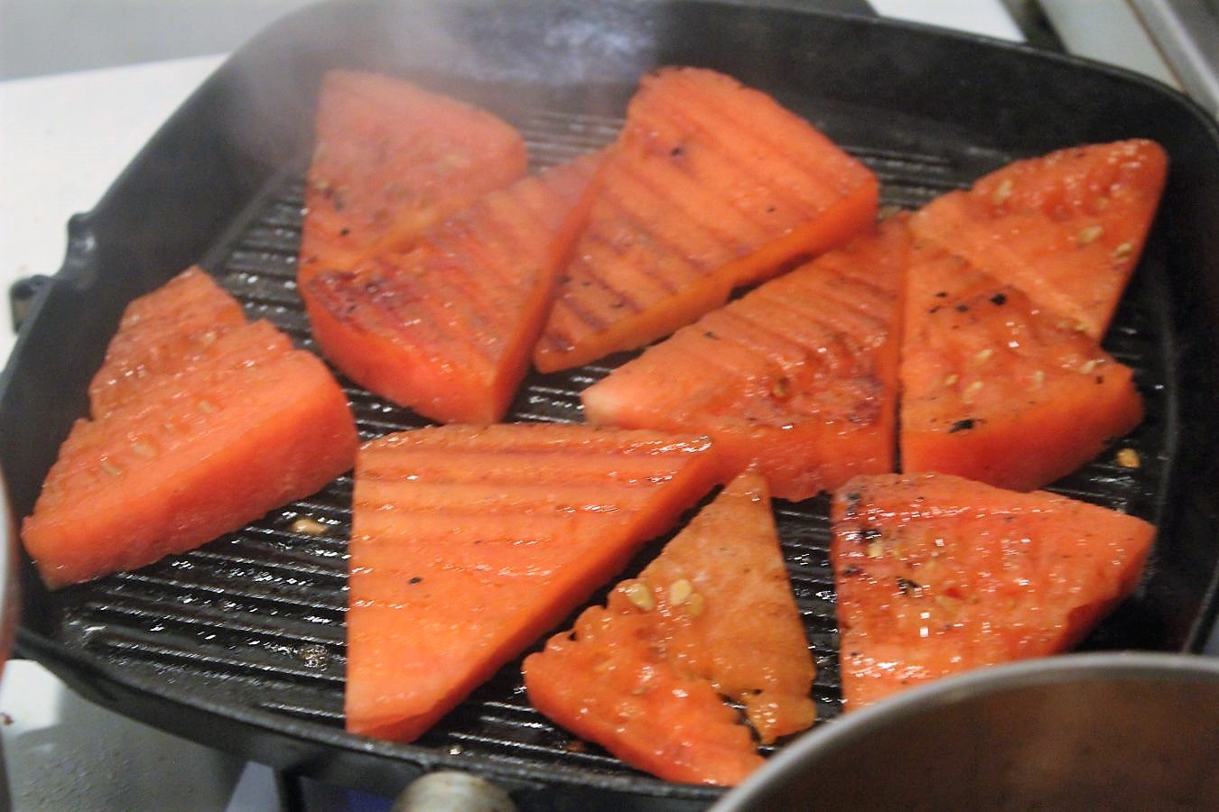 gegrillte Melone mit Lauchzwiebeln (anklicken)