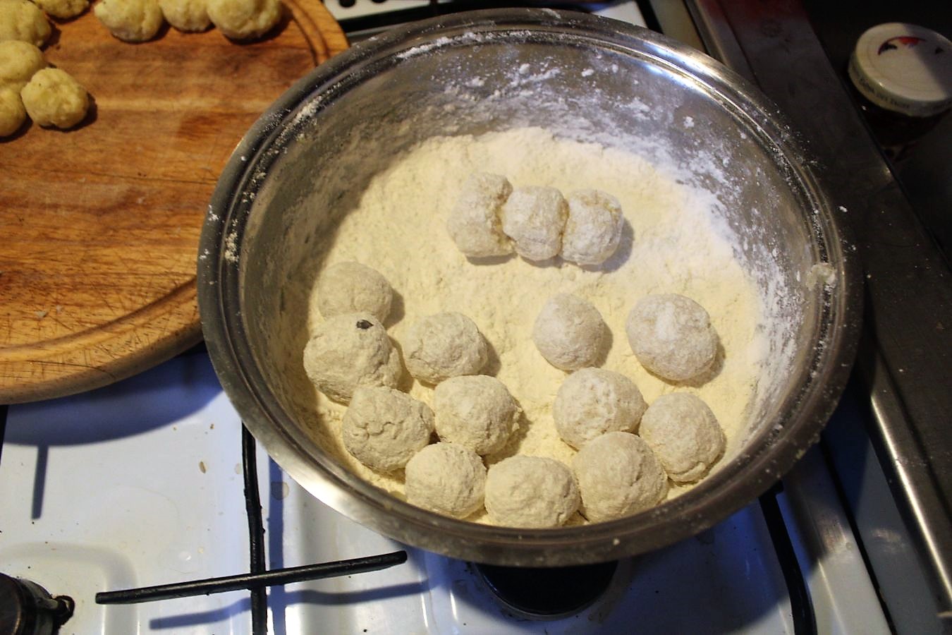 Hier sind die bemehlten Kartoffelbälle