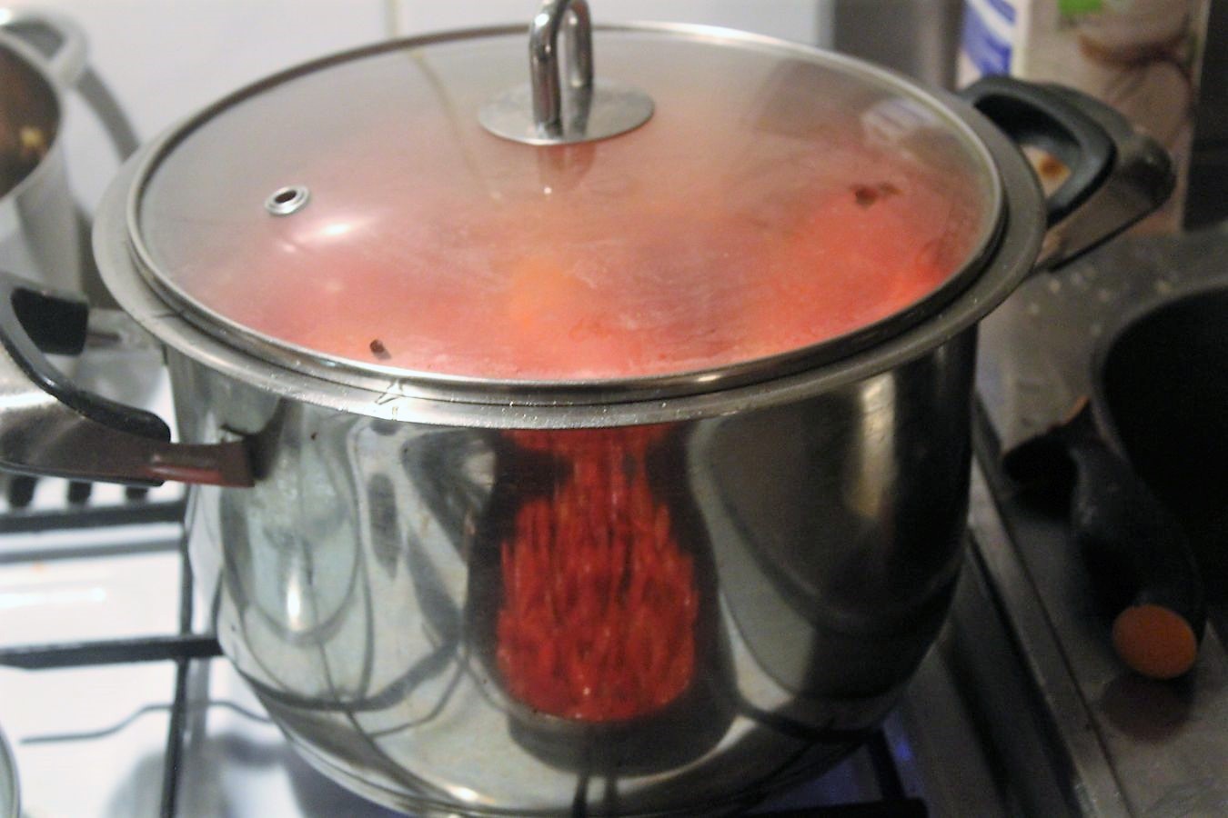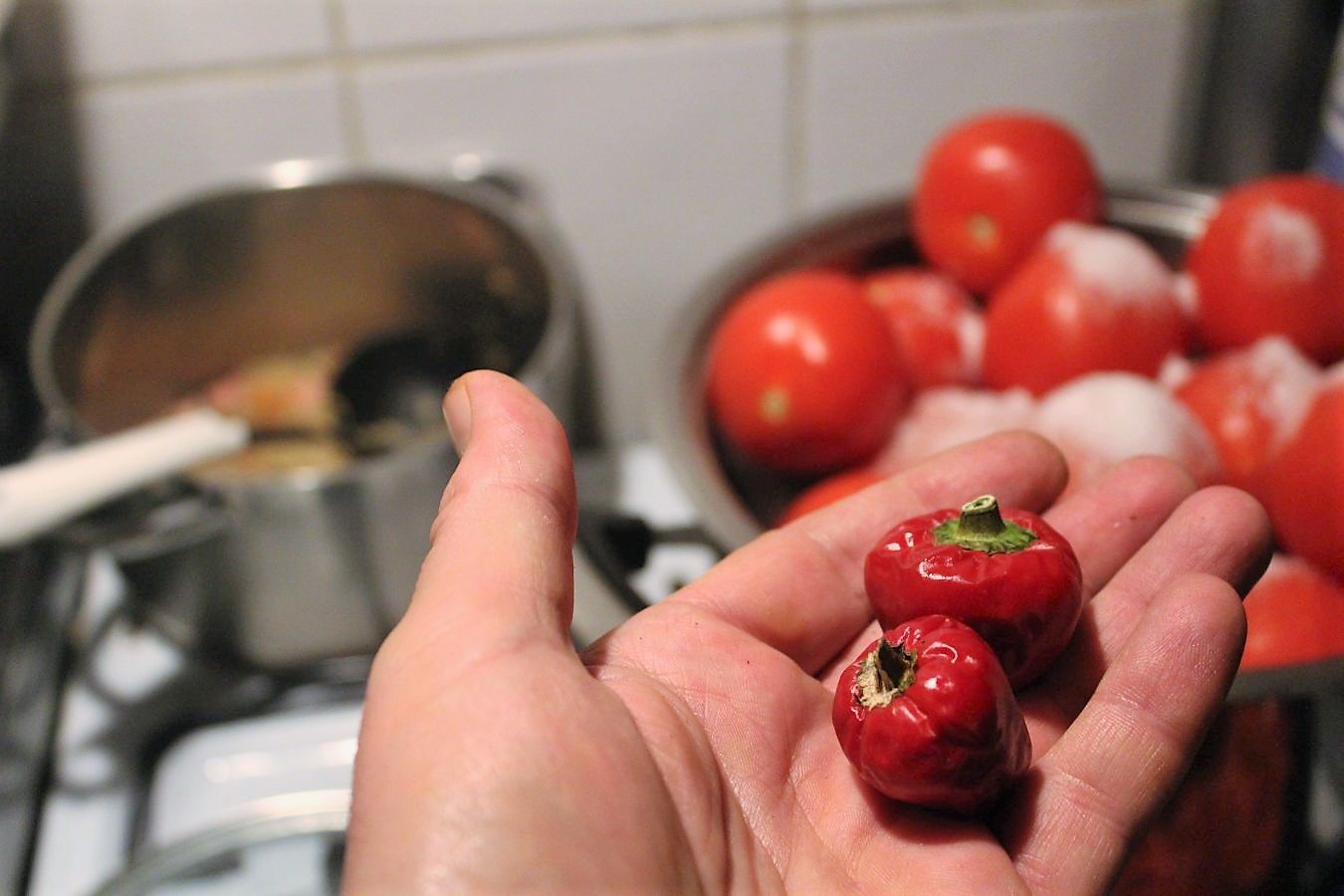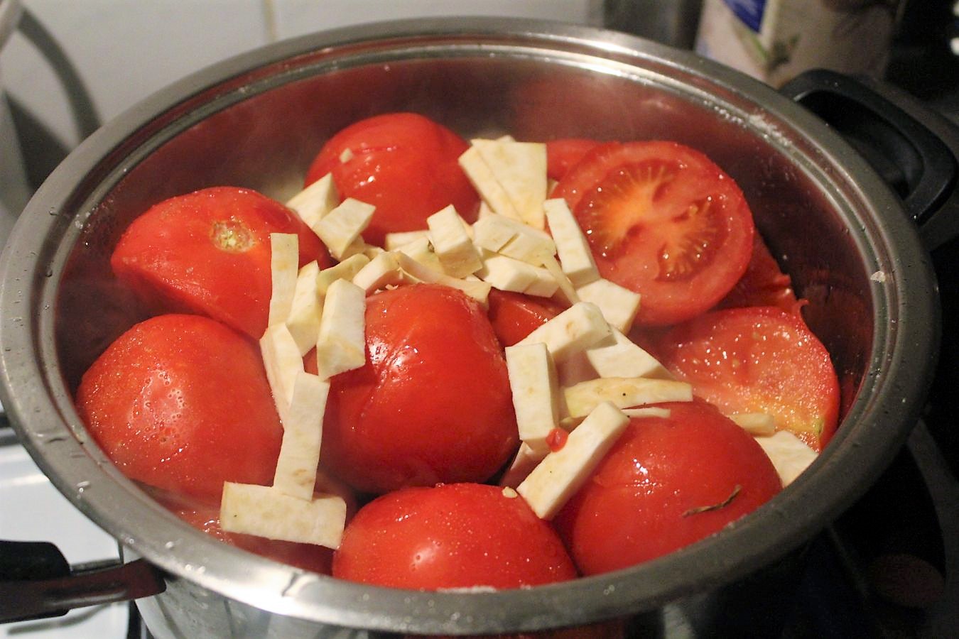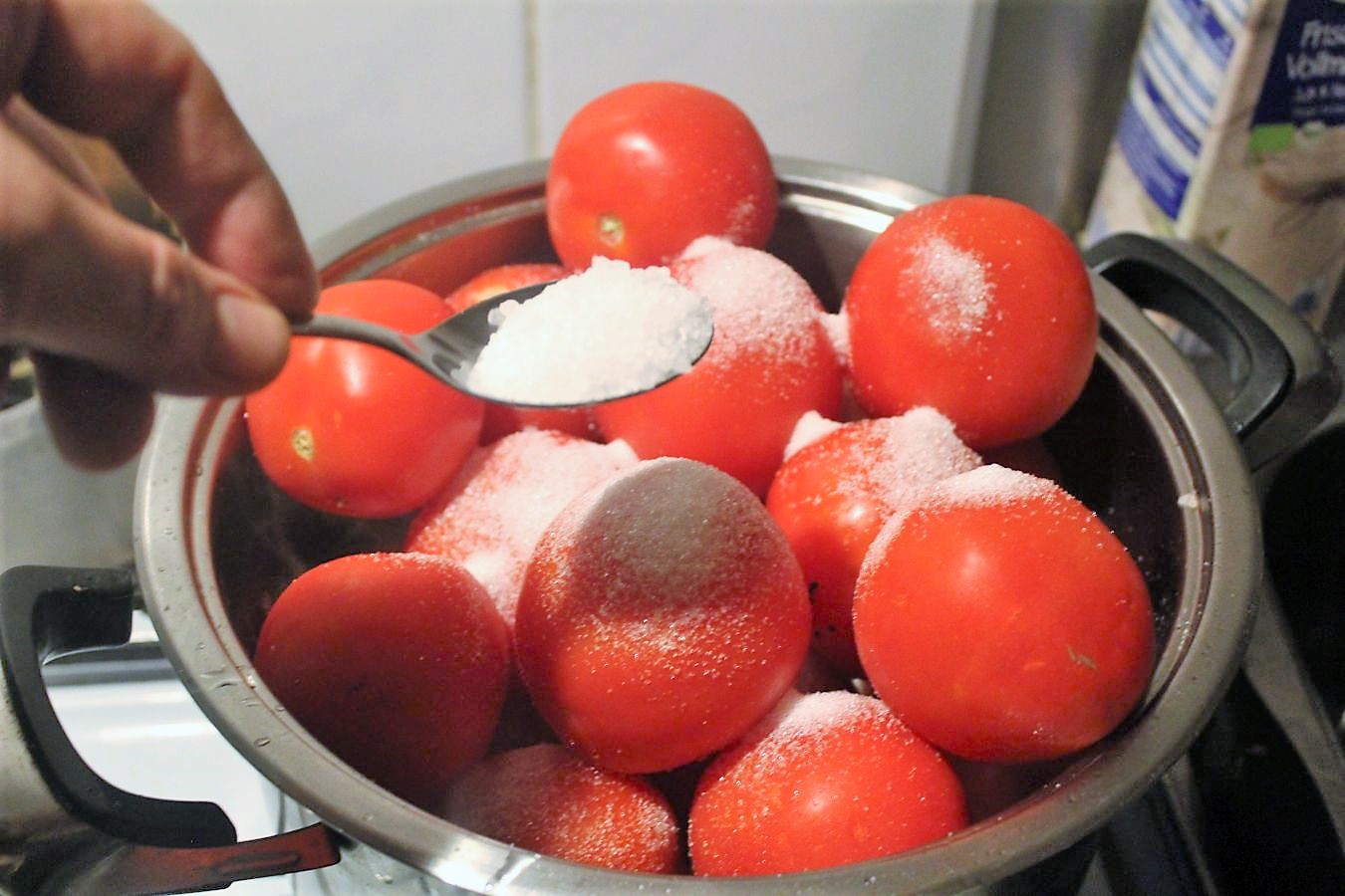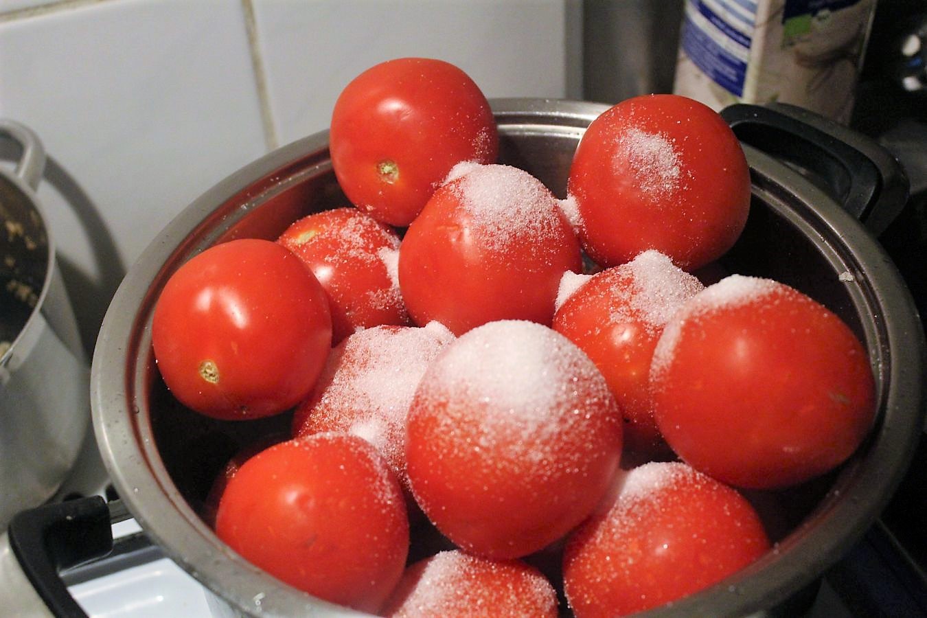 In der Küche steht gerade ein riesiger Topf mit den Tomaten auf dem Herd 🙂