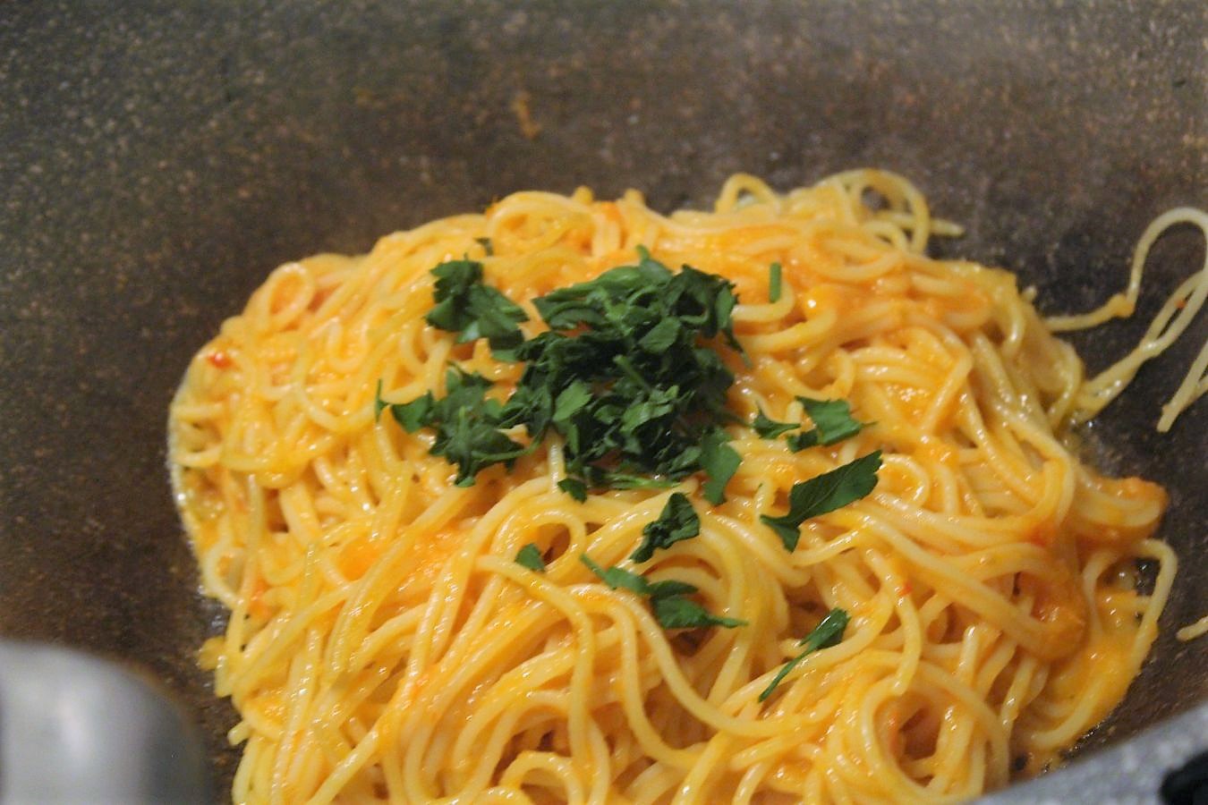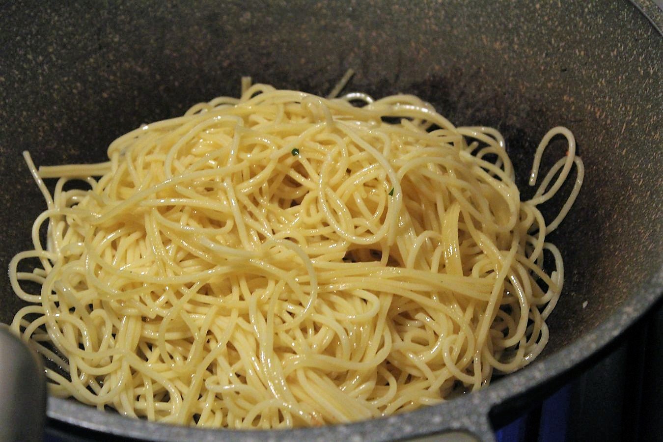 Spaghetti im Fett schwenken