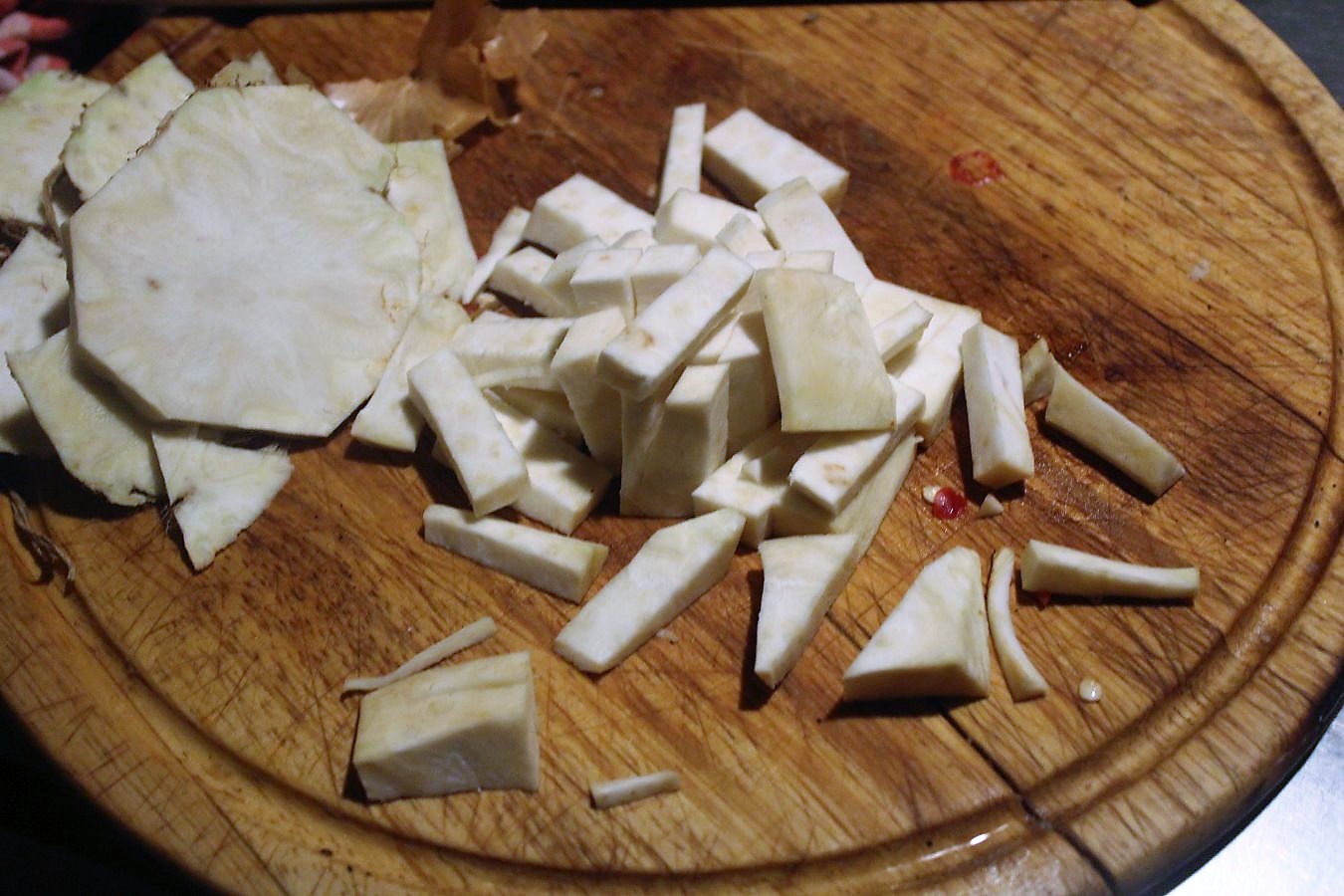 Sellerie stifteln, oder in Stücken in den Topf geben.