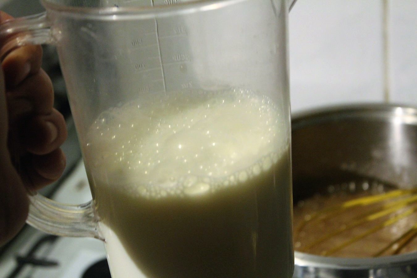 Milch abmessen (ich hatte hier erst Mich stehen, was wieder für ein paar Lacher gut war)