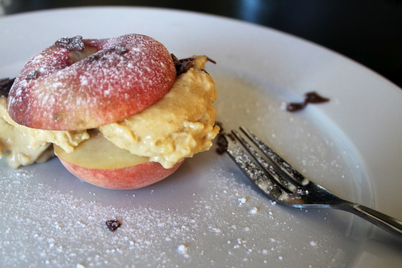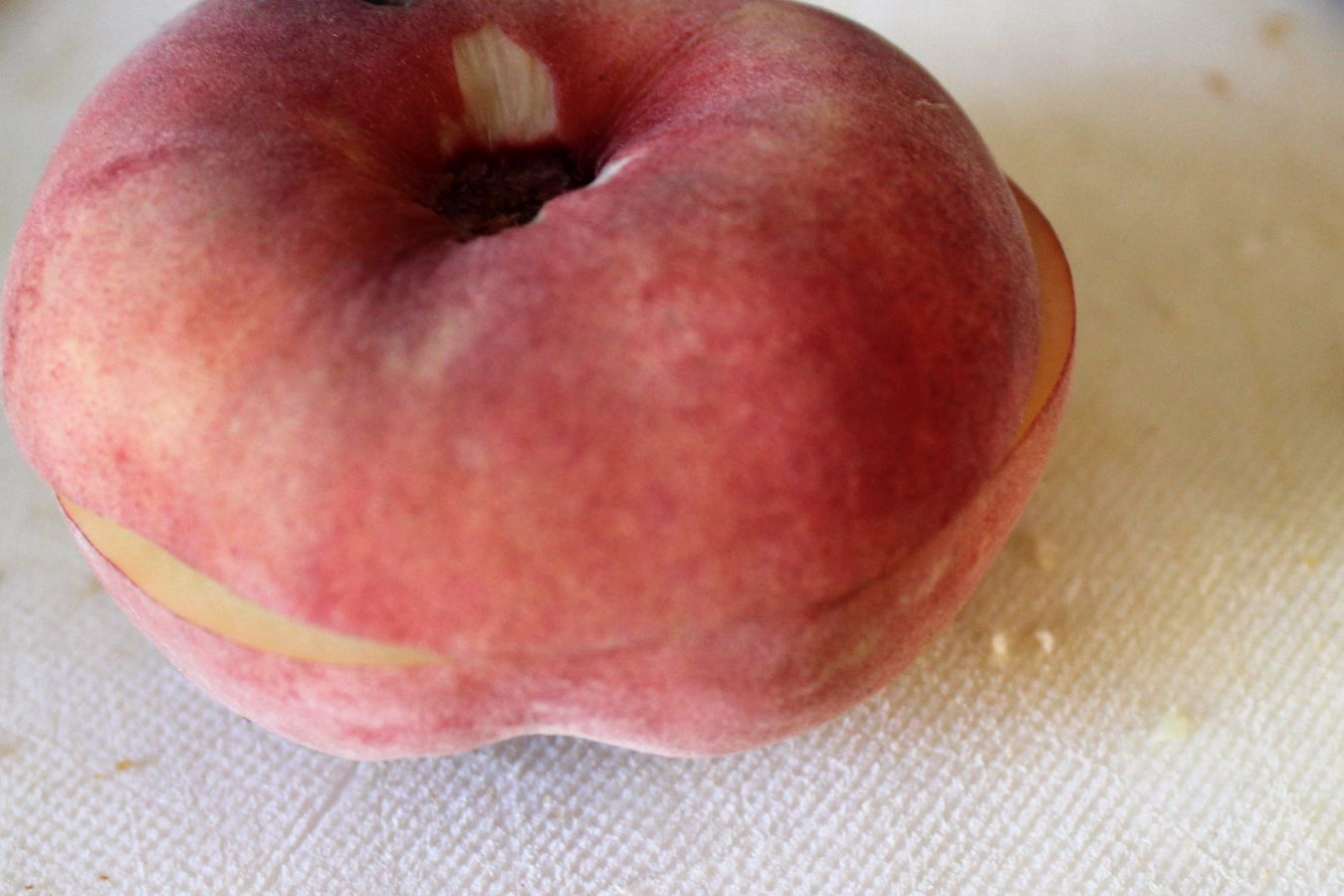 Hier kommt mein Serviervorschlag für den Pudding. Frisches Obst, hier ein Weinbergpfirsisch