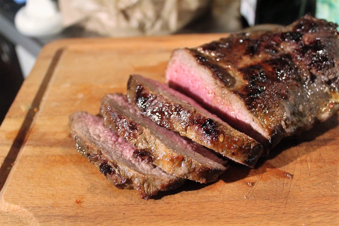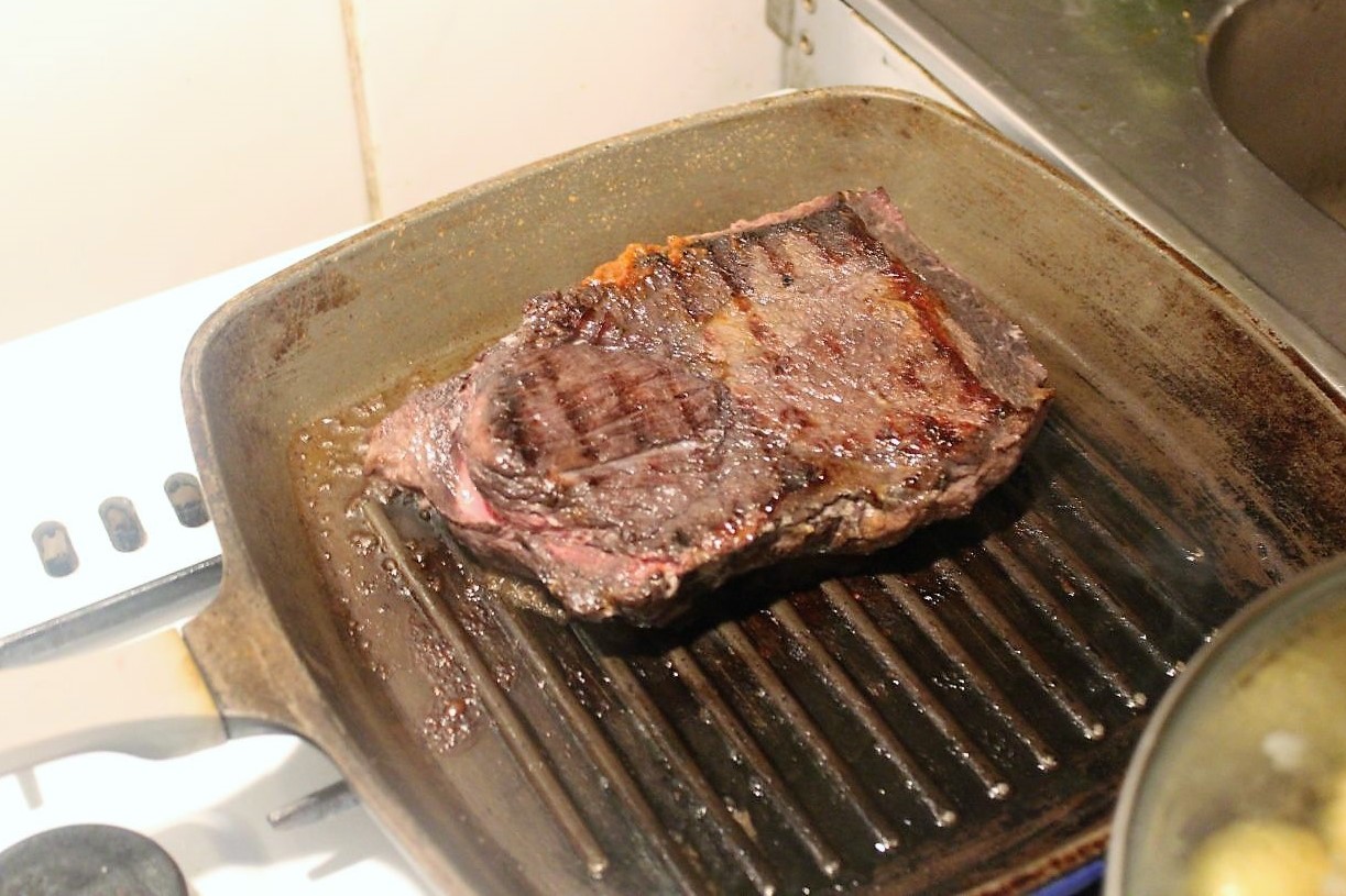 Noch ein bisschen Meersalz auf das Fleisch geben und Pfeffer aus der Mühle. Mehr braucht es nicht, um sich nach einem schweren Tag zu belohnen.