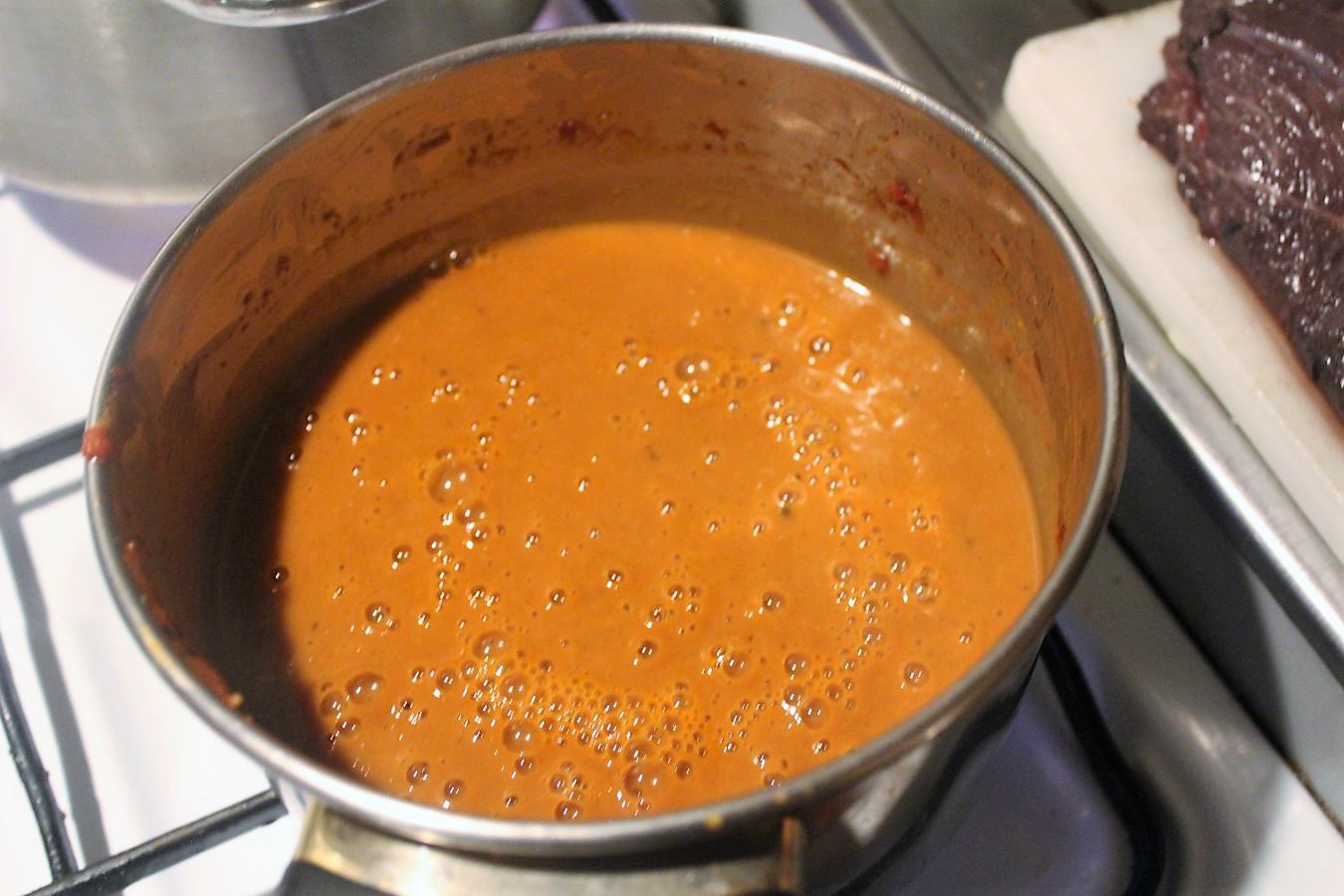 Aber mal ne andere Frage: wieso sieht die Sauce wie Brei aus? Und so stückig? Ist das so gewollt..?