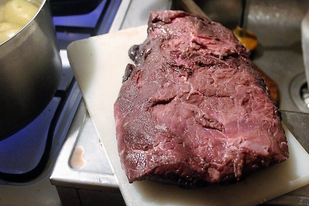 Das Fleisch habe ich mir zwei Wochen vorher total ohne Grund gekauft, einfach nur weil ich gerne Roastbeef mag und das irgendwie immer verbrauche. Meine Kinder stehen auch total drauf und essen das auch gerne roh, nur mit Zitrone und Salz. Dieses Mal ist mir aber gerade nichts eingefallen, was ich damit machen kann und dann habe ich es einfach für 10 Tage in Rotwein eingelegt, damit es nicht schlecht wird.