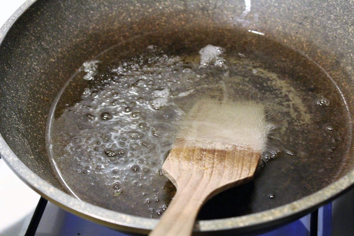 Wenn Blasen sprudelnd aufsteigen, hat das Öl die richtige Temperatur.