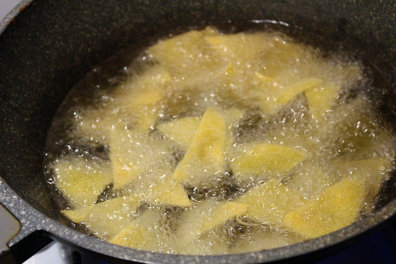 Die Nachos bleiben je nach Temperatur eine bis zwei Minuten im Fett