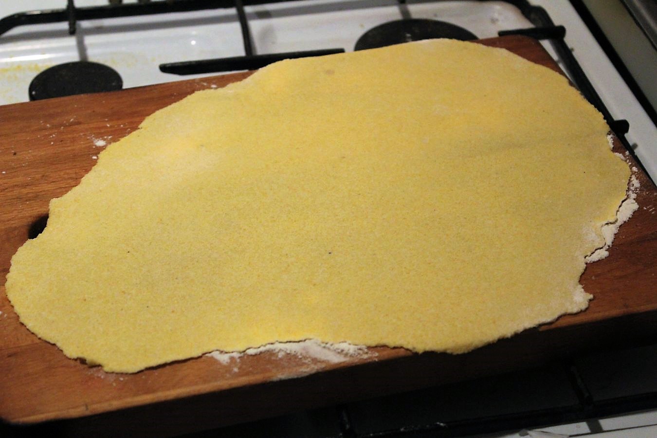 Wenn ich irgendwas neu entwickel und zum ersten Mal mache, dann schreibe ich mir das auf, damit ich Euch hinterher keinen Scheiß erzähle. Wenn Ihr auch mit dem Nudelholz ausrollt, dann bemehlt Ihr jetzt eine Arbeitsfläche.