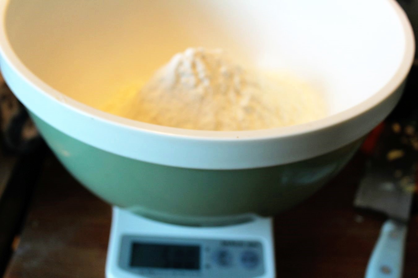 Beim Teig halte mich mich an das, was immer funktioniert. 500 Gramm Mehl abwiegen