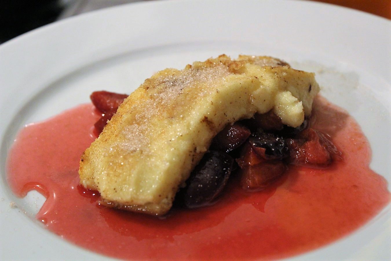 Rezepte irgendwelcher Landfrauen verfolgen mich schon seit meiner Kindheit. Die sind immer dann gut, wenn sie sich an das halten, was sie können. Traditionelle Rezepte, also bodenständige Hausmannskost und mutieren zu total üblen kulinarischen Verbrechen, wenn sie sich an der vermeintlichen Neuzeit vergehen. Meine Leserin Angela hat mir vor ein paar Monaten einen bunten Karton Kochbücher von ein paar Jahrzehnte alt, bis in die Neuzeit geschickt und das ist in der Gesamtheit wirklich ein Schatz. Dieses Landfrauenkochbuch aus Schwaben ist das zwischen dem rohen und verbrannten Teil auch. Die Scheußlichkeiten zeige ich Euch später, hier kommt nun eine leckere Süßspeise, Grießschnitte mit Pflaumenkompott. Heiligs Blechle….