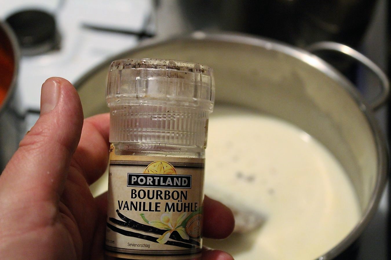 Ein bisschen Vanille aus der Mühle dazu geben. Die ist auch extra und steht nicht bei den Landfrauen im Rezept.