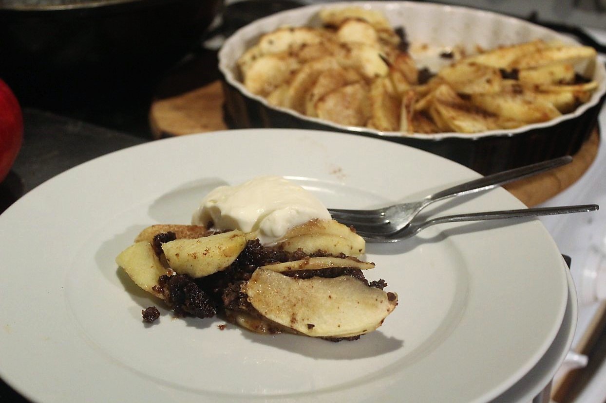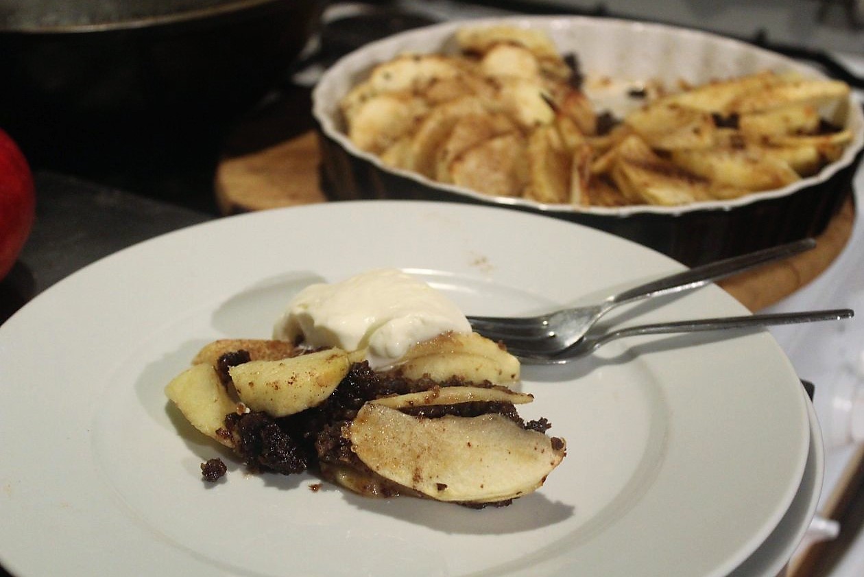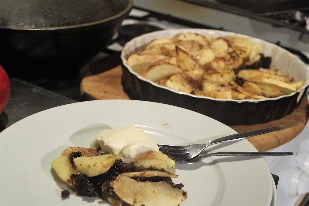 Der Geschmack ist richtig klasse. Pumpernickel ist vom Zucker und der Flüssigkeit aus den Äpfeln karamellisiert und hat trotzdem noch ein wenig Säure. Die Äpfel sind weich und schmecken richtig saftig. Die Prise Zimt schadet dazu auch nicht. Ich konnte mir vorher nicht vorstellen, dass das so gut harmoniert, aber das ist echt richtig klasse.