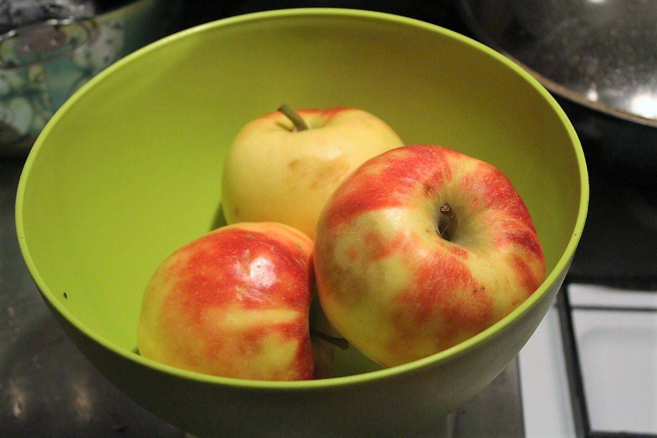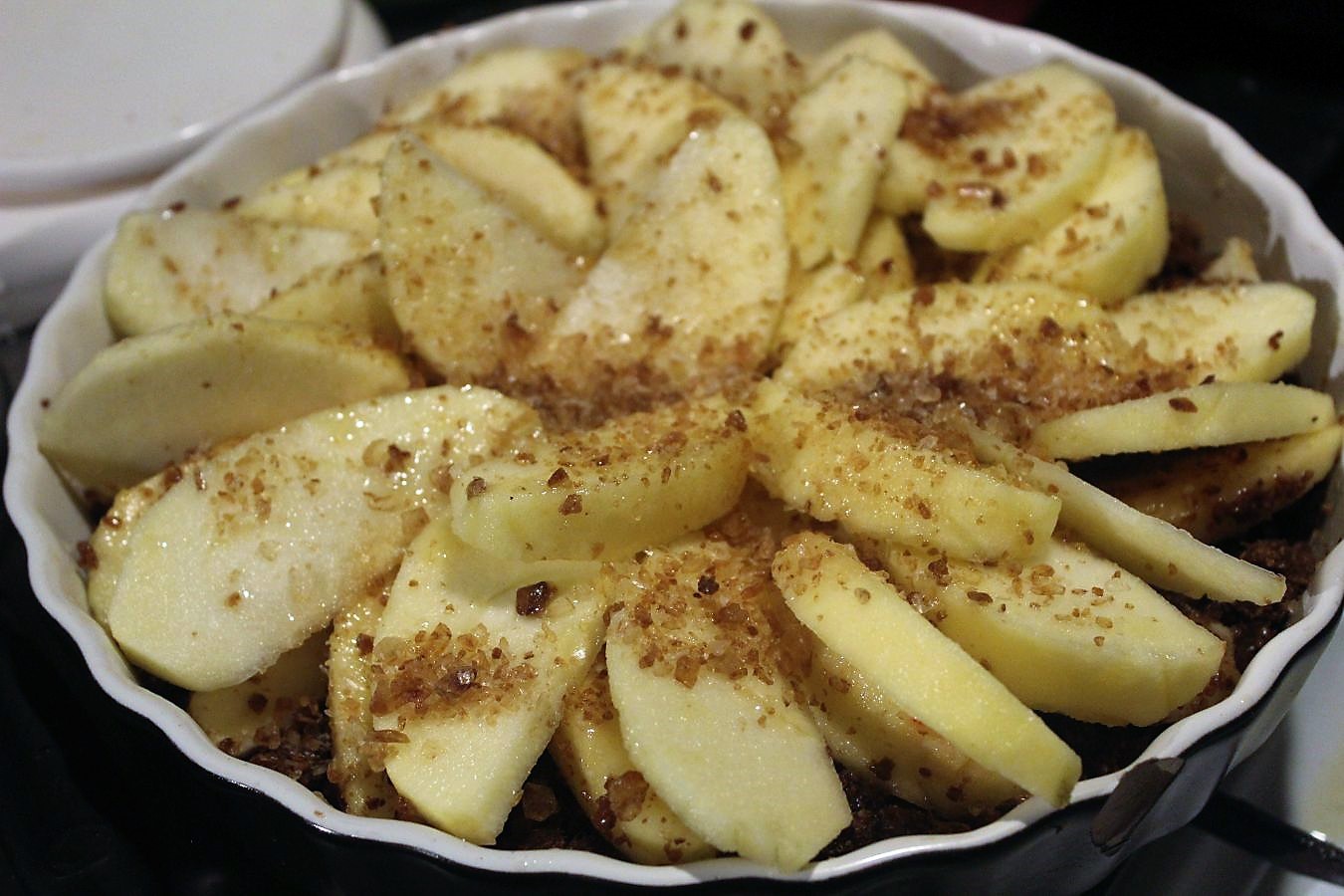 Danach den Kuchen in den Ofen stellen und so lange backen, bis die Äpfel weich sind. Ihr werdet so um die 45 Minuten brauchen. Mein lahmer Gasofen braucht eine Stunde, weil ich keine Oberhitze habe.