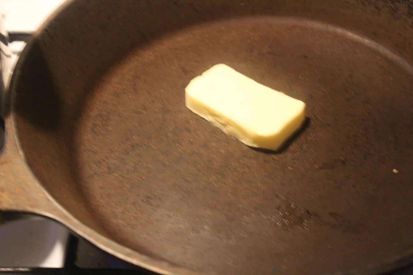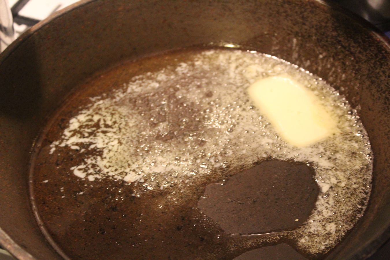 Wenn die Butter heiß ist, Knoblauch hinein geben.
