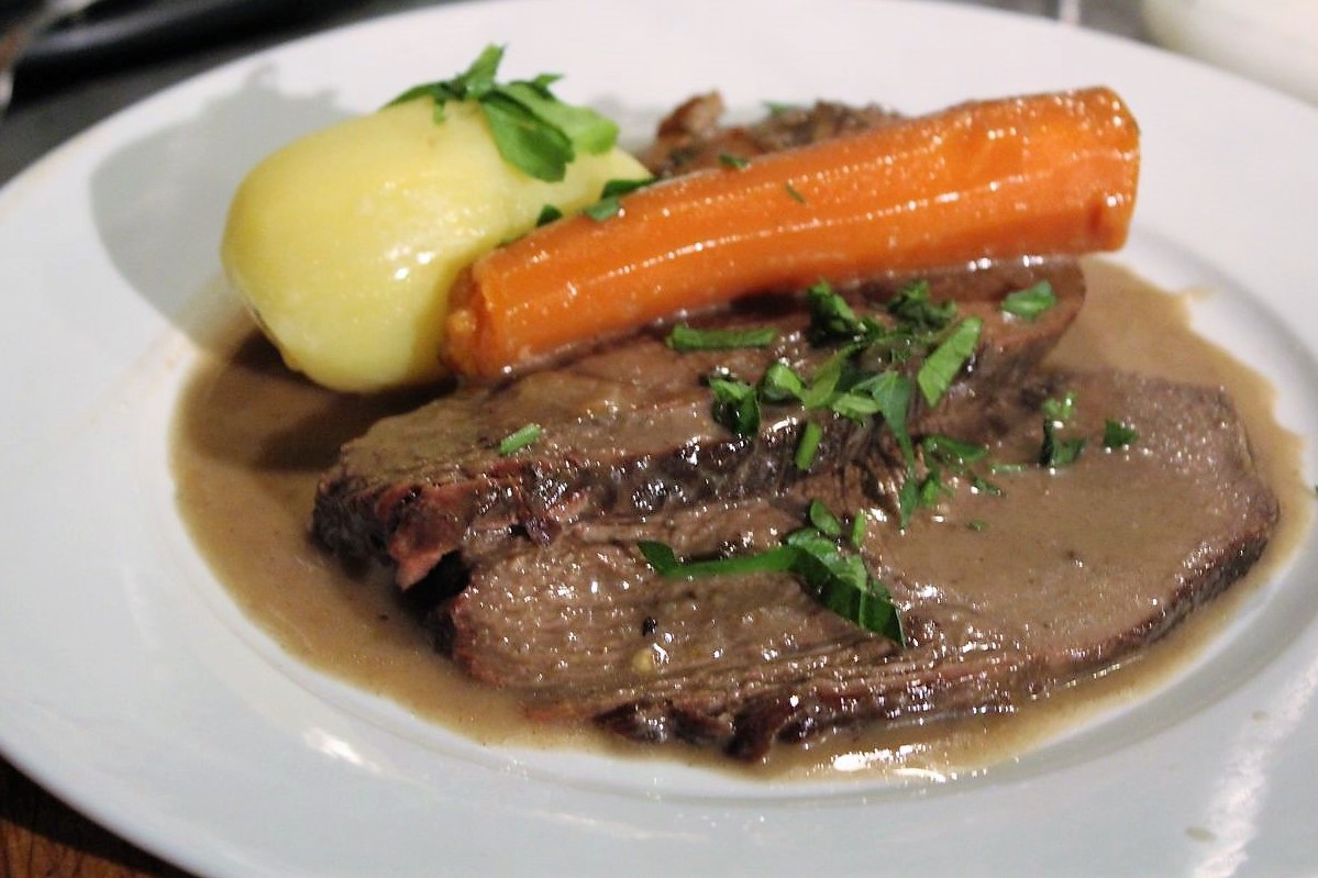 Den ersten Abend schmort man quasi nebenbei und am nächsten Tag beim Servieren hat man noch eine Stunde zum Anwärmen Soße abbinden und die Kartoffeln