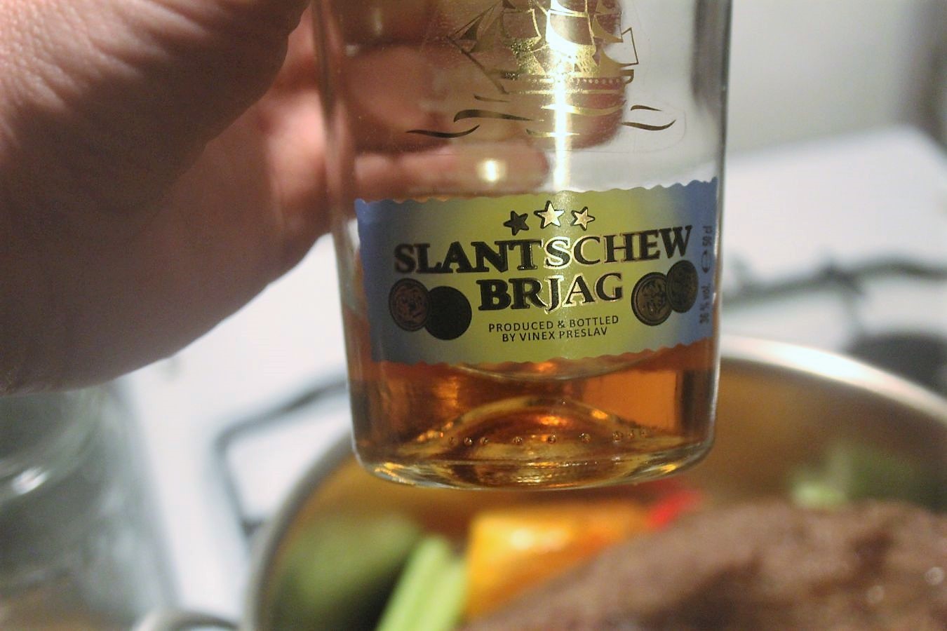 Jetzt noch den Brandy. Ihr könnt auch Weinbrand nehmen, oder Metaxa. Das gibt einen runden Geschmack
