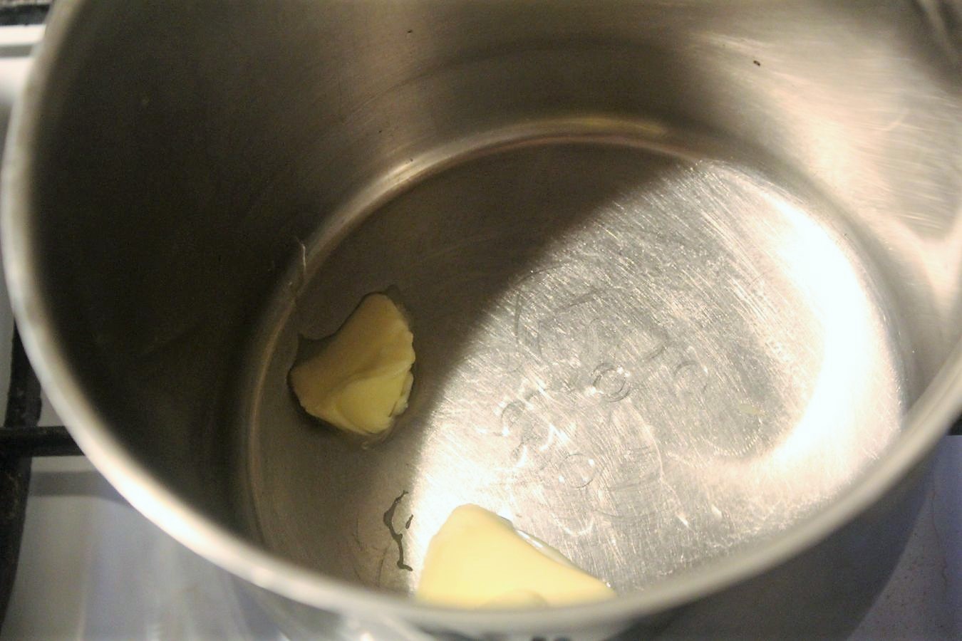 Schmalz im Topf erhitzen. Das ist übrigens mein neuer 24 cm Topf von diepfanne.com. Die können jetzt auch Töpfe.