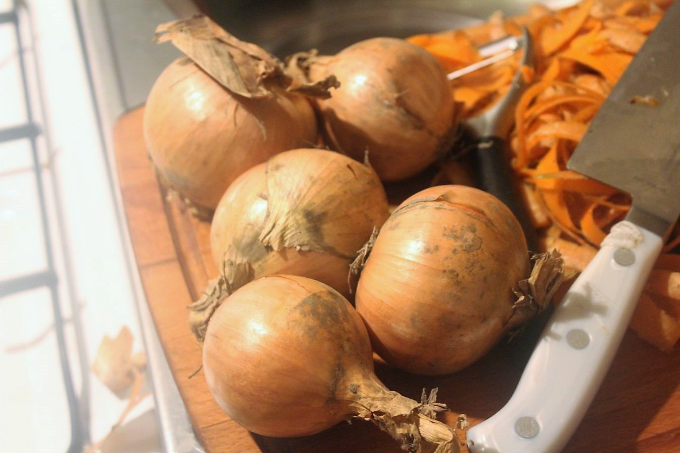 5 Knoblauchzehen, die lasse ich am Stück. Wer keine beißen will, findet sie so leichter.