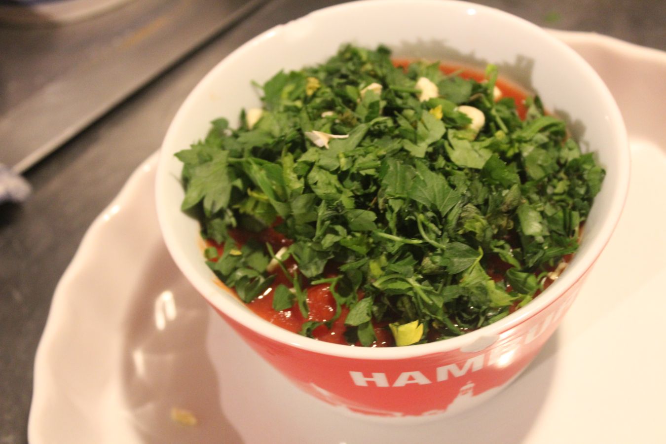 Petersilie und gehackten Knoblauch mit den Tomaten vermischen.