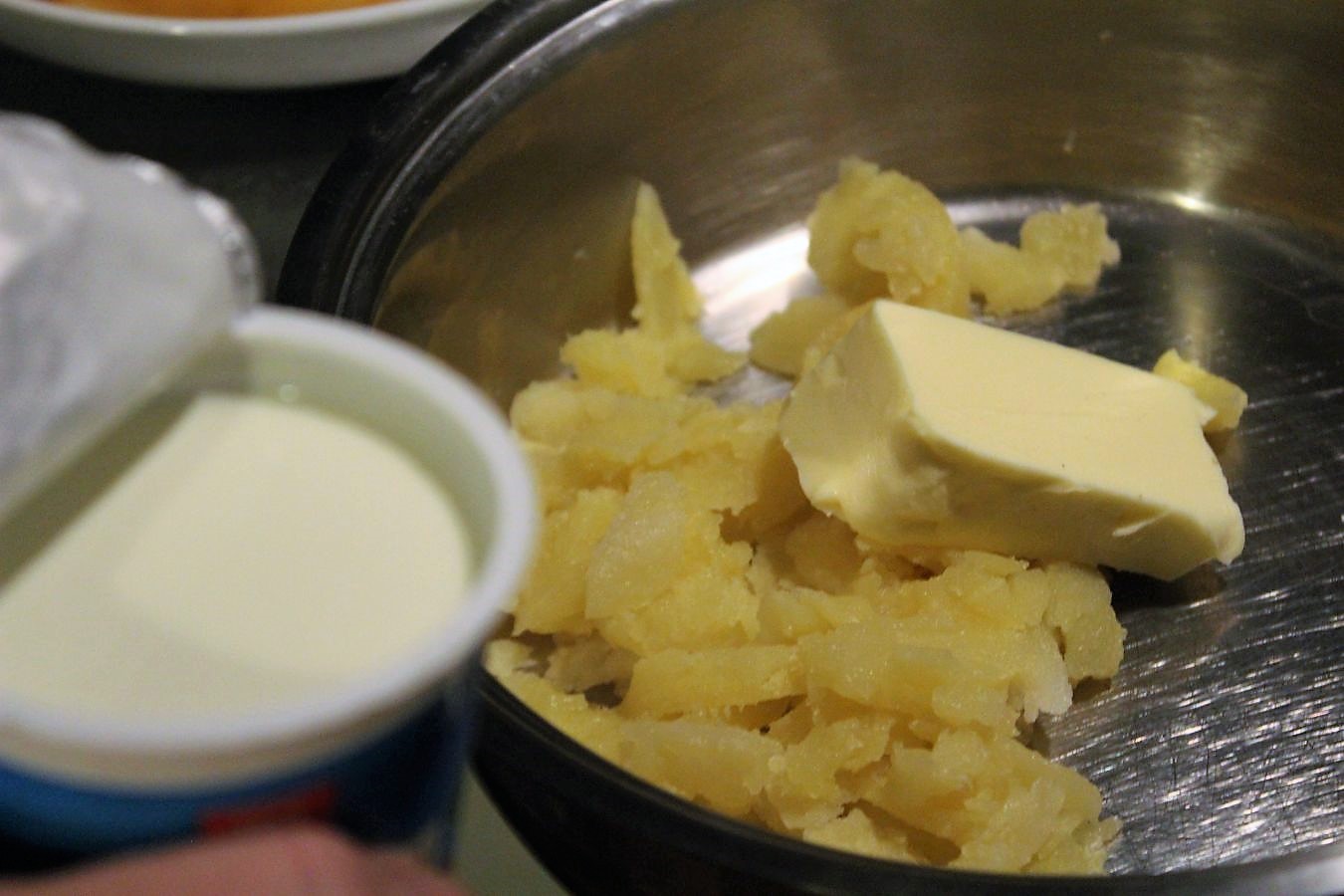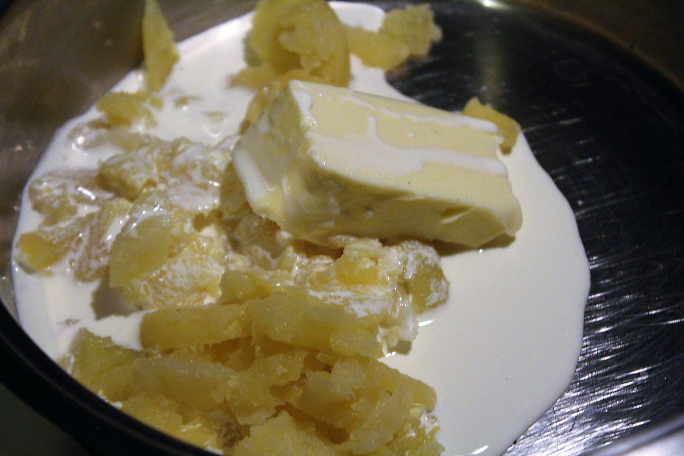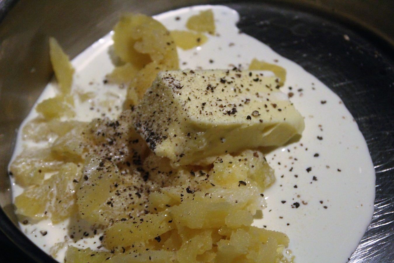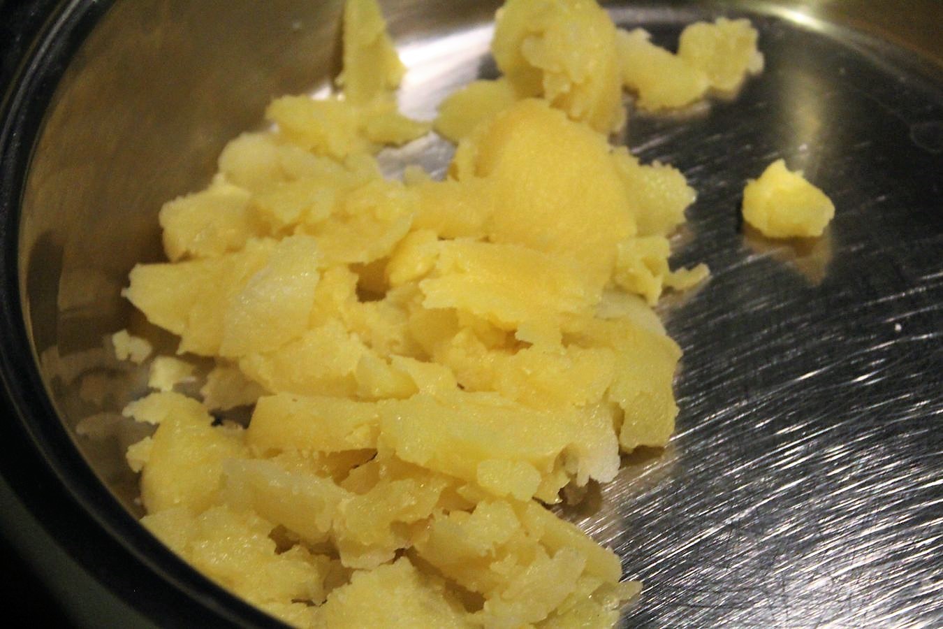 Jetzt geht es weiter. Das sind die gegarten Kartoffeln