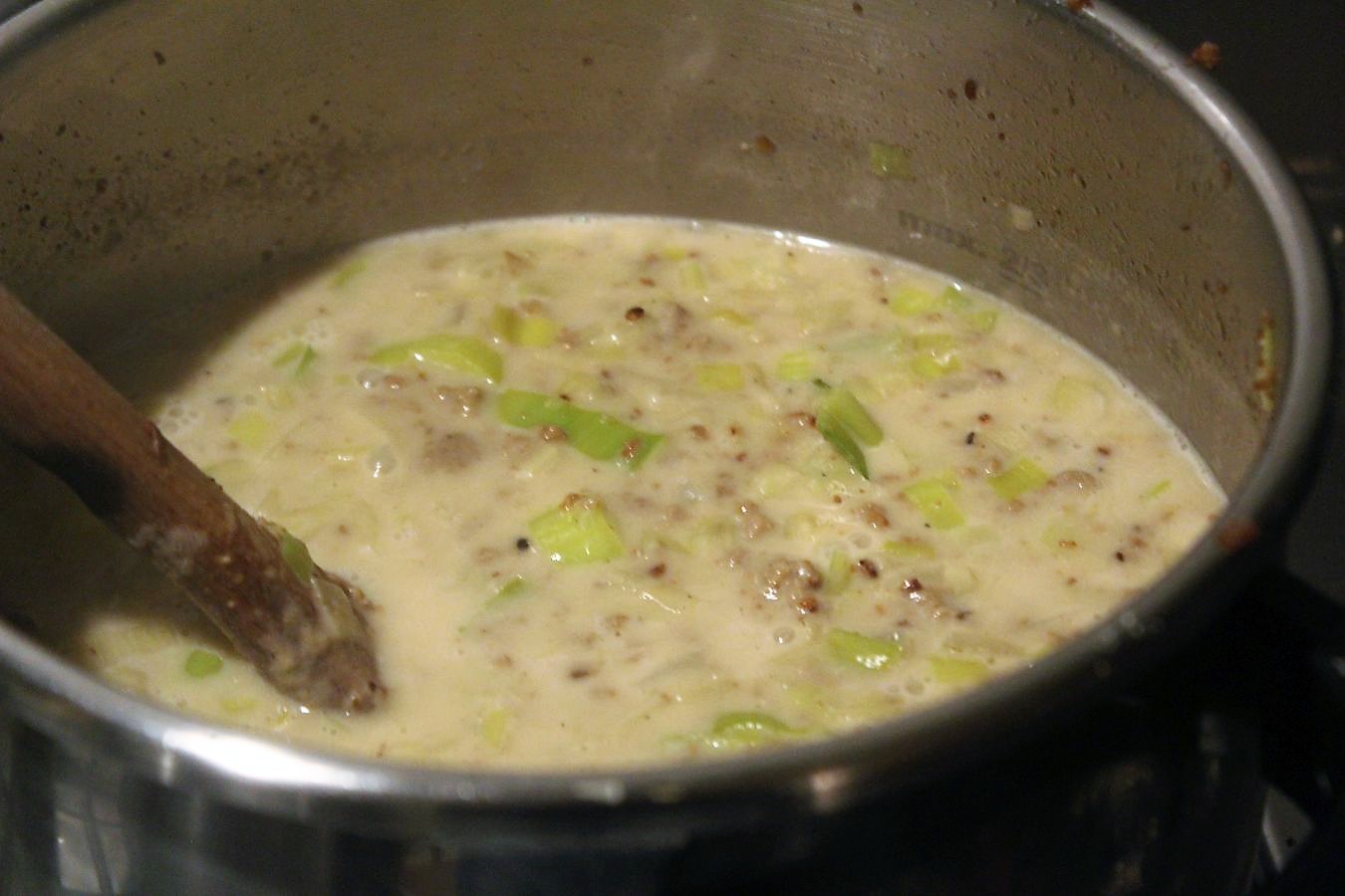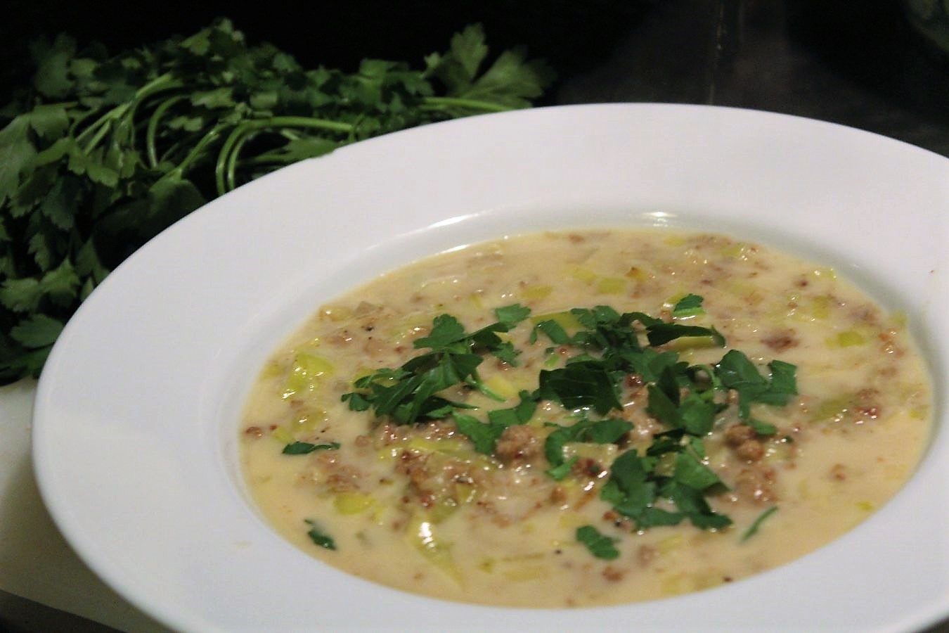 So lasse ich mir auch eine Käse-Lauchsuppe mit Hackfleisch gefallen.
