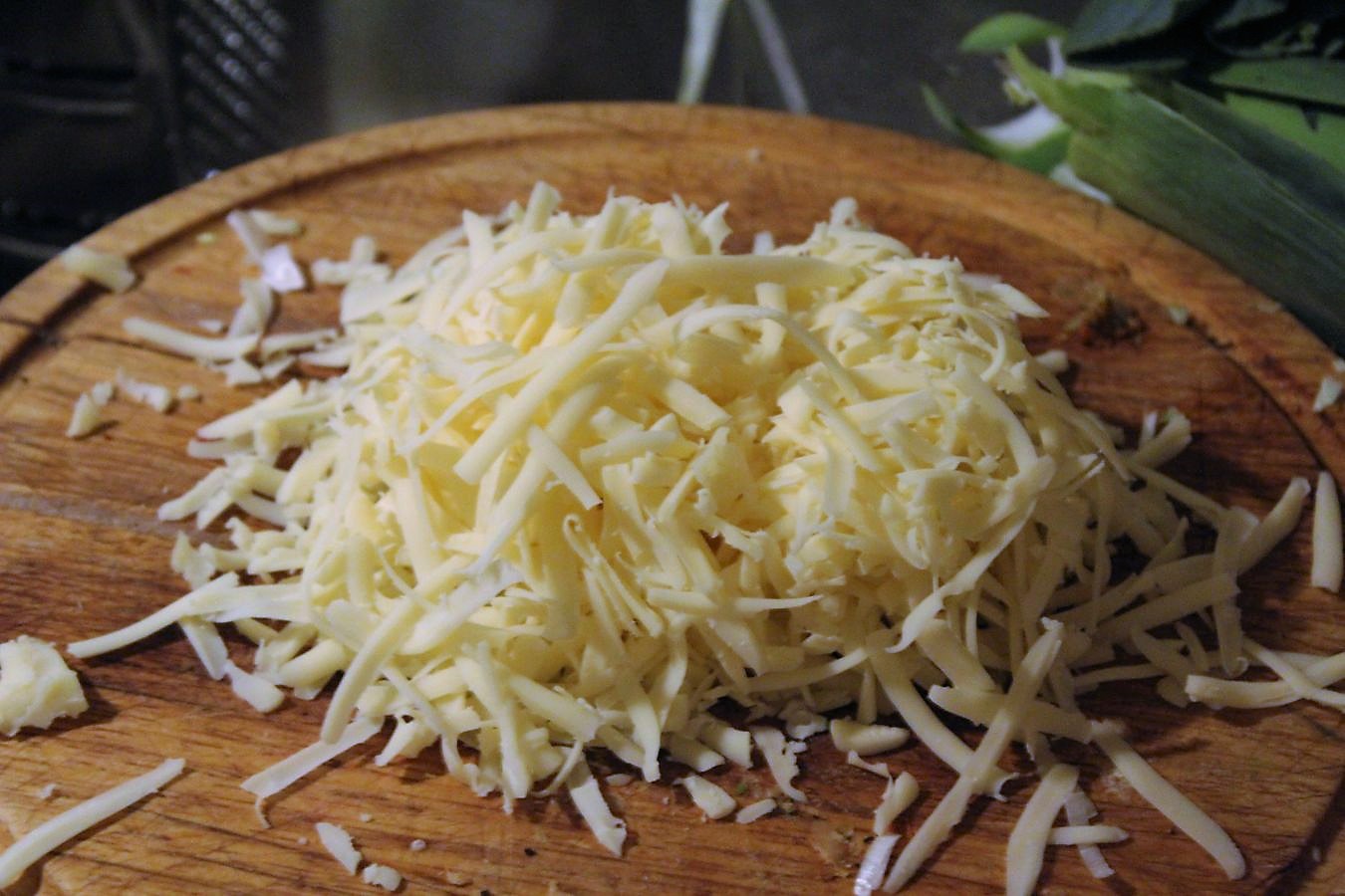 Als weitere Schimpansenzutat kommt dann immer noch Schmelzkäse in die Suppe. Wir nehmen aber richtigen Käse, nämlich Edamer, oder Gouda, oder, oder. Hauptsache ein Käse mit Schmelzeigenschaften. 200 Gramm Käse mit der Reibe zerkleinern. Industriell hergestellter Käse ist natürlich auch nicht der Weisheit letzter Schluss, aber das ist wenigstens noch richtiger Käse. Der Schmelzkäse, kommt dagegen komplett ohne Reifungsprozess aus und ist nur Fett und Wasser und Schmelzsalz, also pure Chemie. Deswegen ist das auch ein weiterer Kritikpunkt an der unreflektierten Suppenpampe aus den Rezepten, die man sonst zum Nachkochen angeboten bekommt, oder noch schlimmer auf dem Teller serviert.