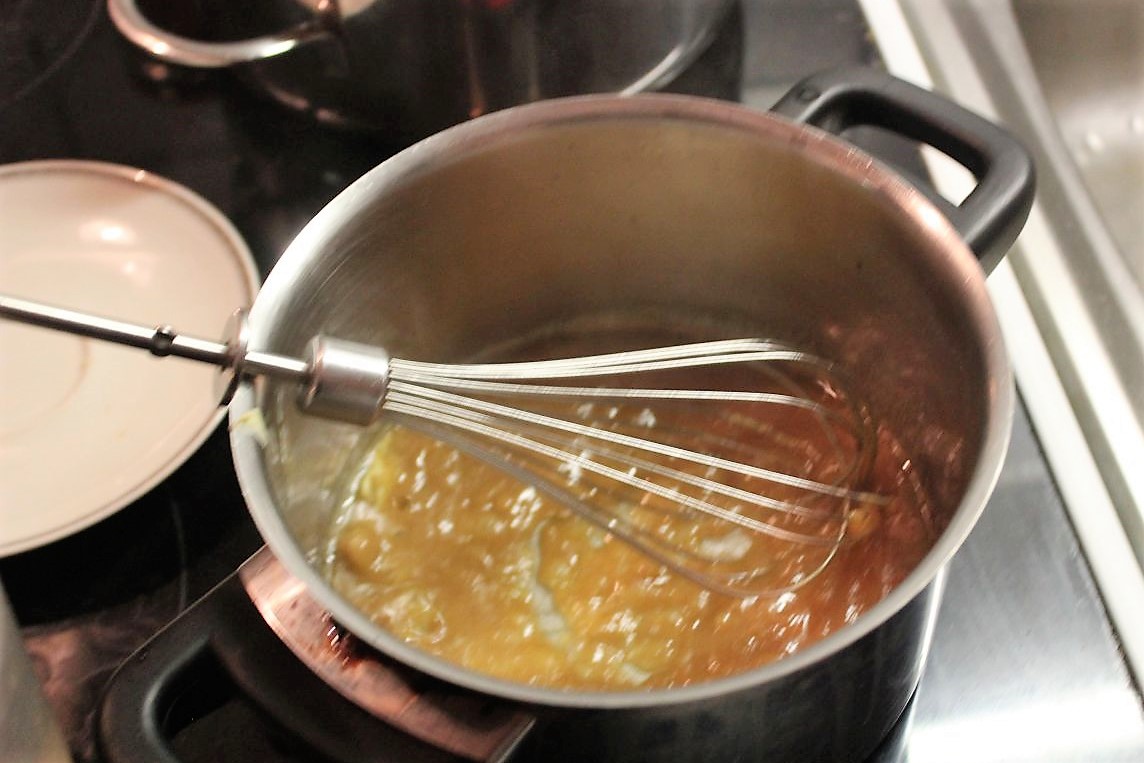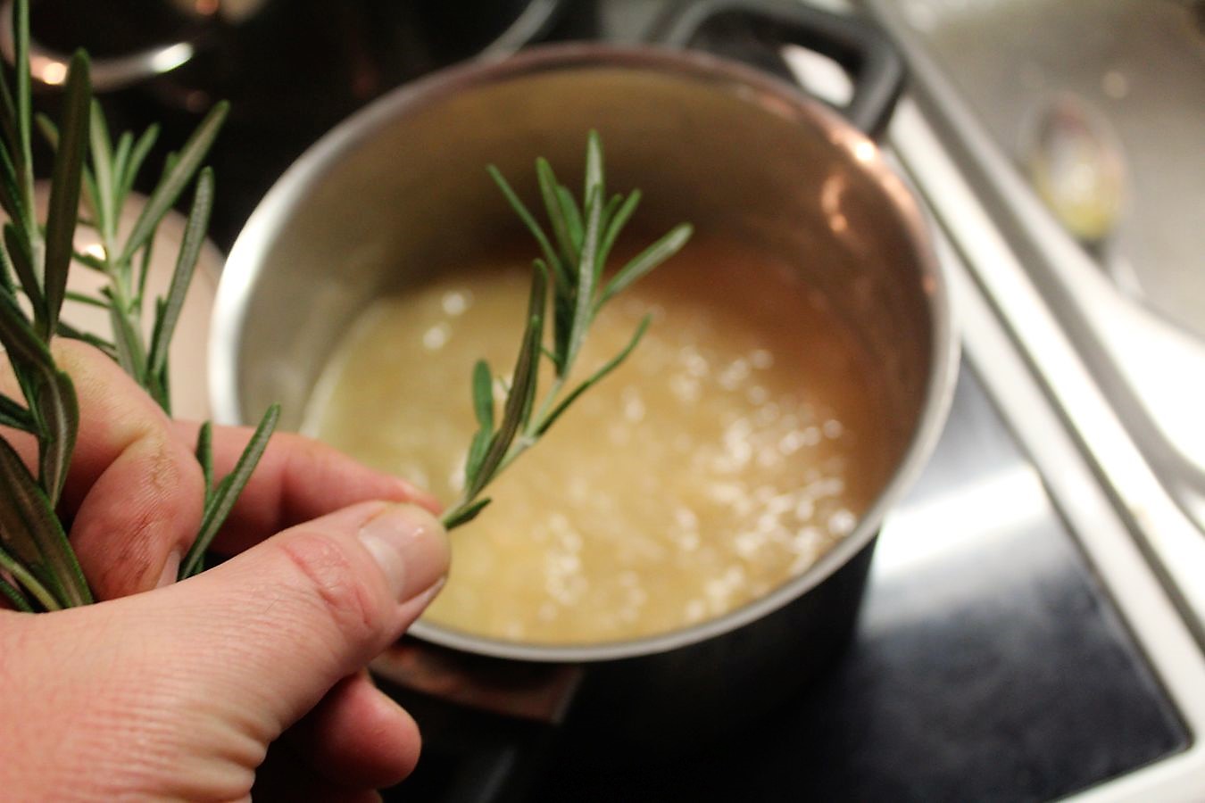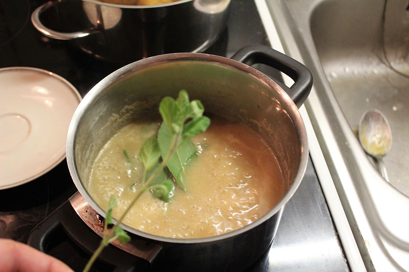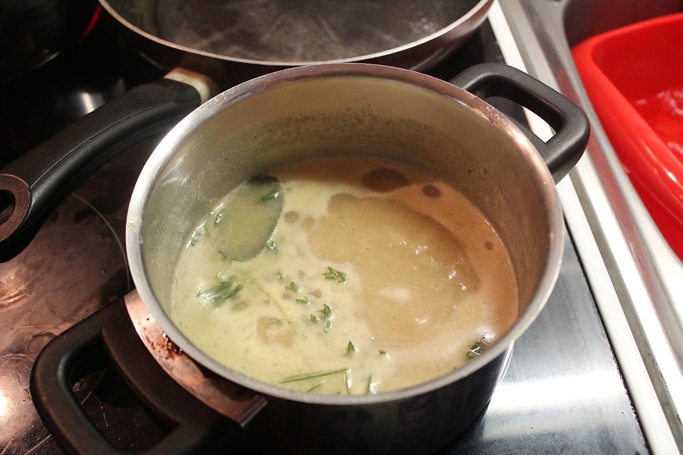 Soße auf kleinster Flamme einkochen lassen und mit Salz und Pfeffer abschmecken. Man kann über Bremen ja sagen was man will. Auf jeden Fall ist das Licht dort in der Küche viel besser zum Fotografieren, als zuhause in Berlin.