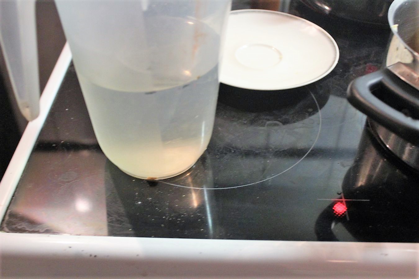 Schon mal Wasser abfüllen. Da ich ein Auswärtsspiel habe, kann ich natürlich nicht auf meine heimische Brühesammlung zurückgreifen.