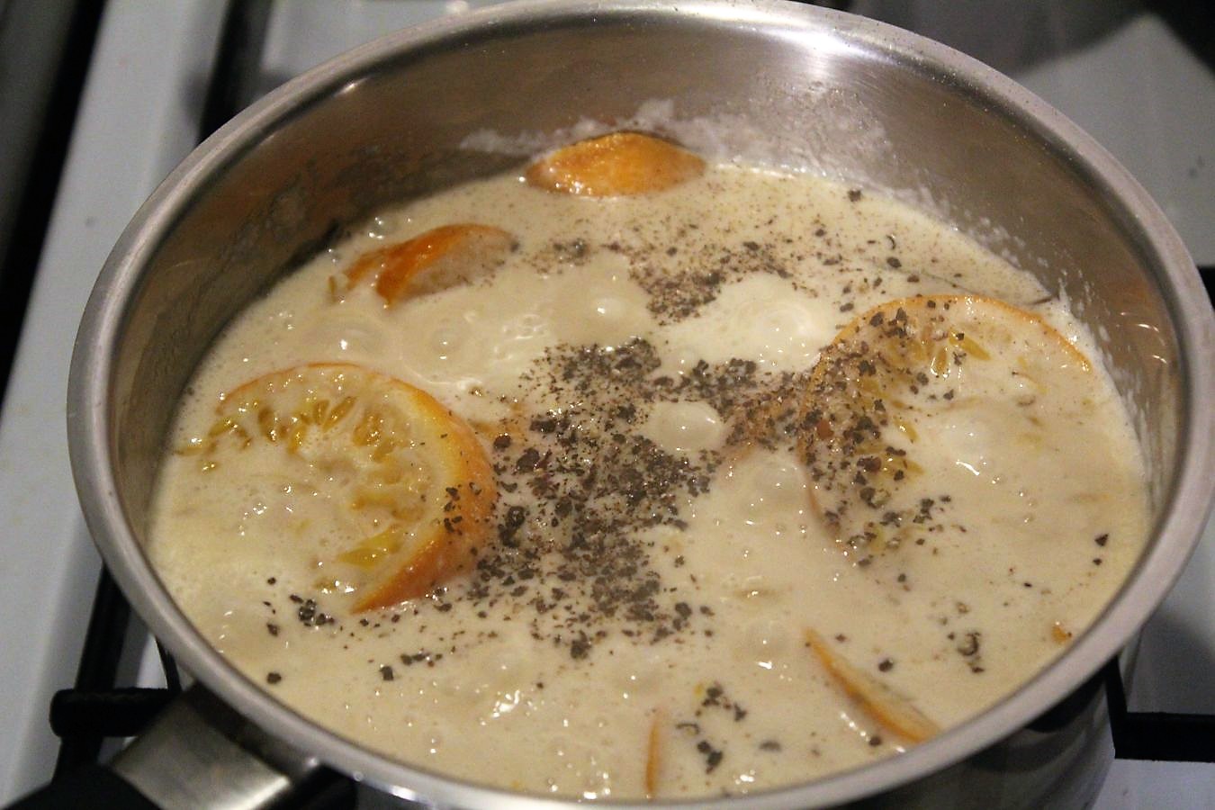Wie immer dauert die Soße am längsten, also fangen wir mit der an. Das ist jetzt keine Aussage darüber wie lange Beilagen dauern. Nudeln, Kartoffeln, Gemüse. Aber wenn ich das Fleisch und die Soße als Einheit betrachte, dann dauert die Soße länger als das Fleisch in der Pfanne. Ich hatte dazu Nudeln (8 Minuten, wenn das Wasser kocht) und Fenchel (anklicken), der mit Schneiden maximal 15 Minuten gedauert hat. Die Soße soll aber immer 20 Minuten einkochen, weil Mehl dran ist, das man dann nicht mehr schmeckt.