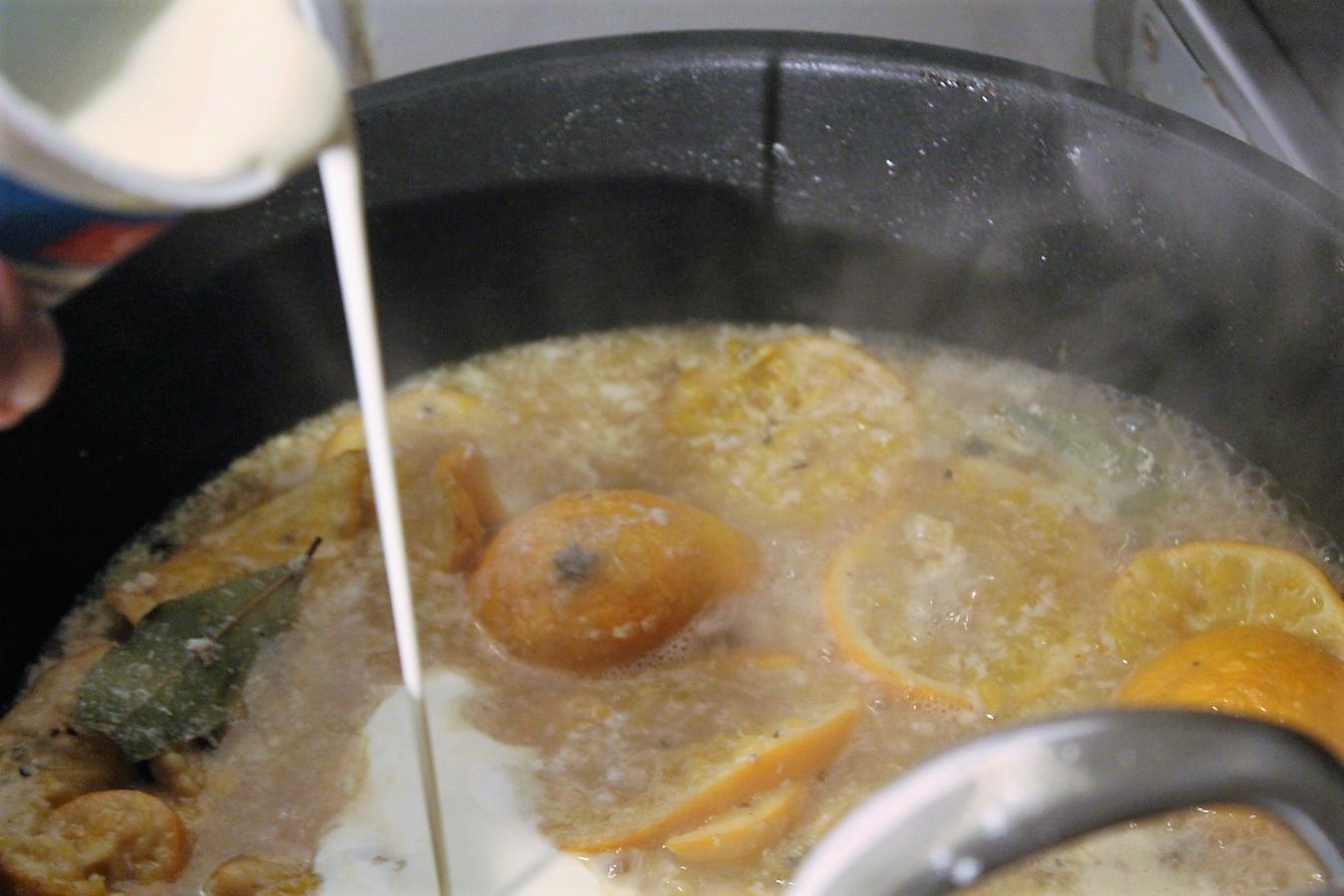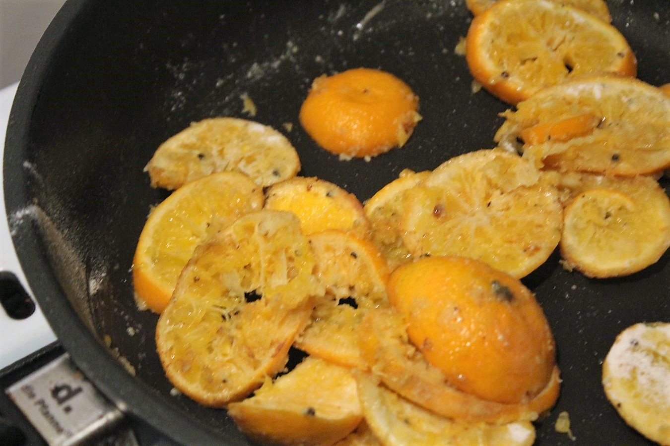 Die Mandarinen aus der Marinade in die Pfanne werfen.