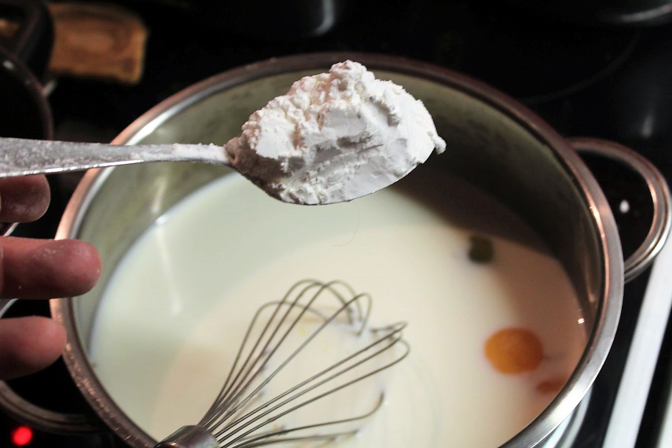 Man merkt das schon beim Rühren, wie der Pudding in dem Maße fester wird, wie die Milch heißer wird.